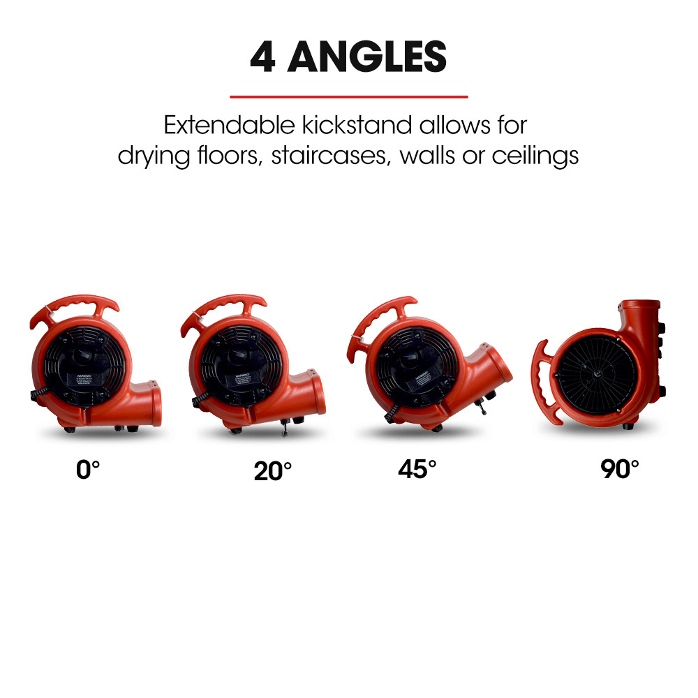 This carpet dryer is designed to facilitate efficient water removal from carpets and floors. It features a durable housing, a powerful motor, and large fan blades to generate high airflow with minimal noise. Its compact and portable design makes it suitable for various drying applications, including water damage restoration and cleaning tasks.