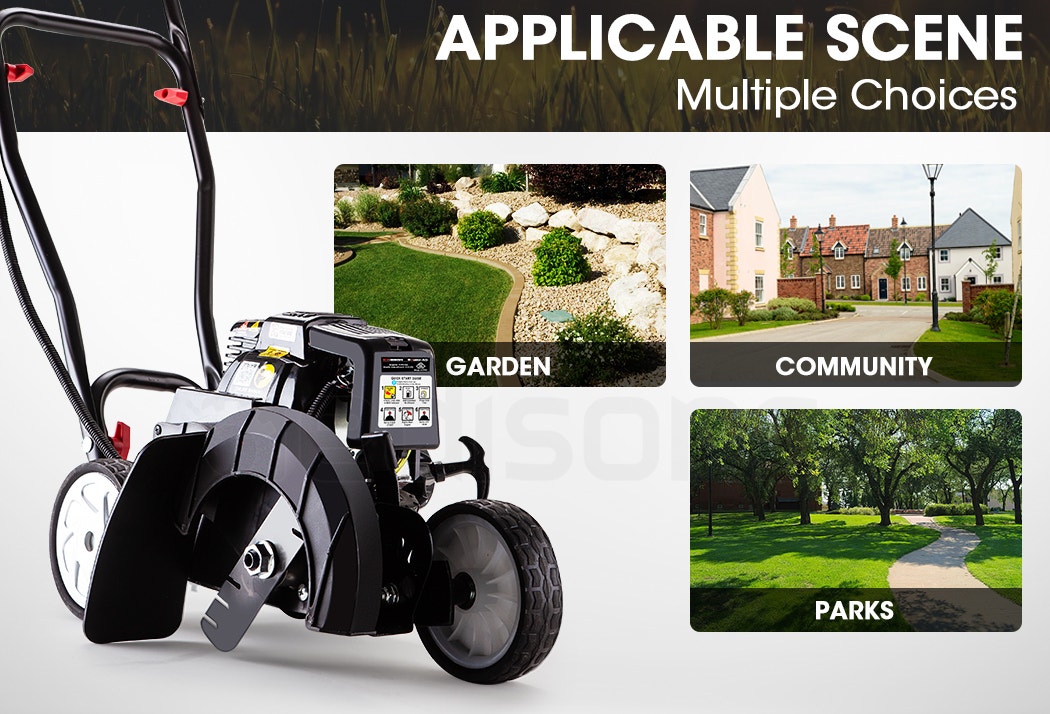 This petrol lawn edger is designed for professional and home gardening, providing precise and neat edging for lawns, pathways, driveways, and flower beds. It features a powerful engine and adjustable settings to handle various landscaping tasks efficiently.