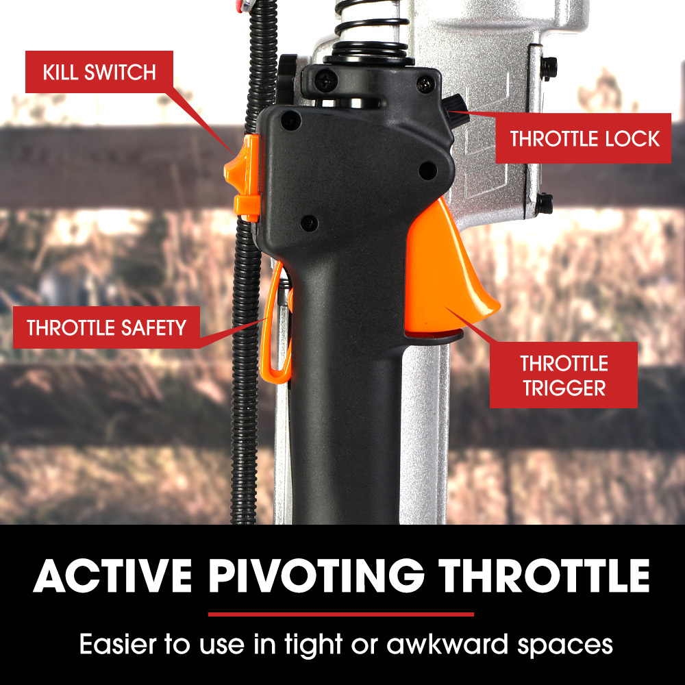 This petrol post driver is designed for driving fence posts, star pickets, tent stakes, and similar objects into the ground. It features a powerful four-stroke engine that delivers high impact force, making tasks quicker and easier. The lightweight and portable design allows for use in tight spaces and easy transportation between job sites.