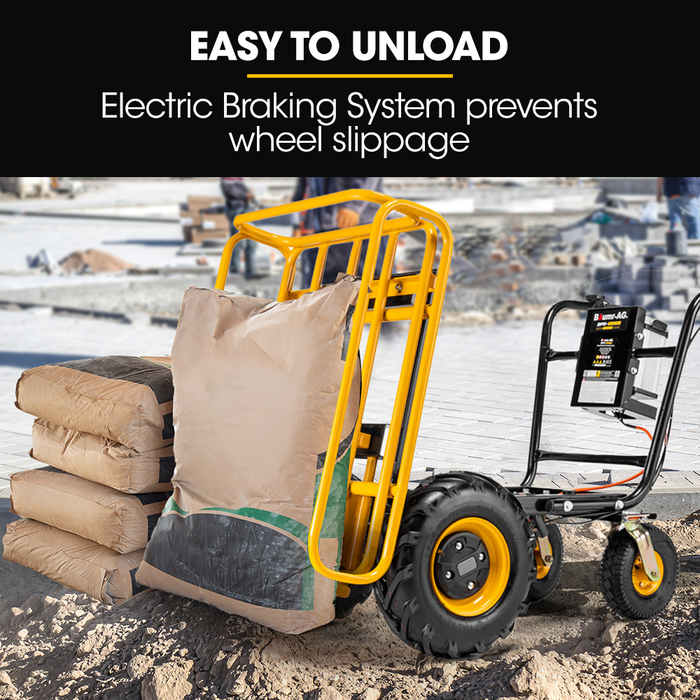 The 40V Battery Powered Material Handling Dumper Wheelbarrow is designed to enhance heavy-duty material hauling with powerful performance and durable construction. It offers efficient, zero-emissions operation suitable for various work environments such as job sites, warehouses, farms, and landscaping tasks.