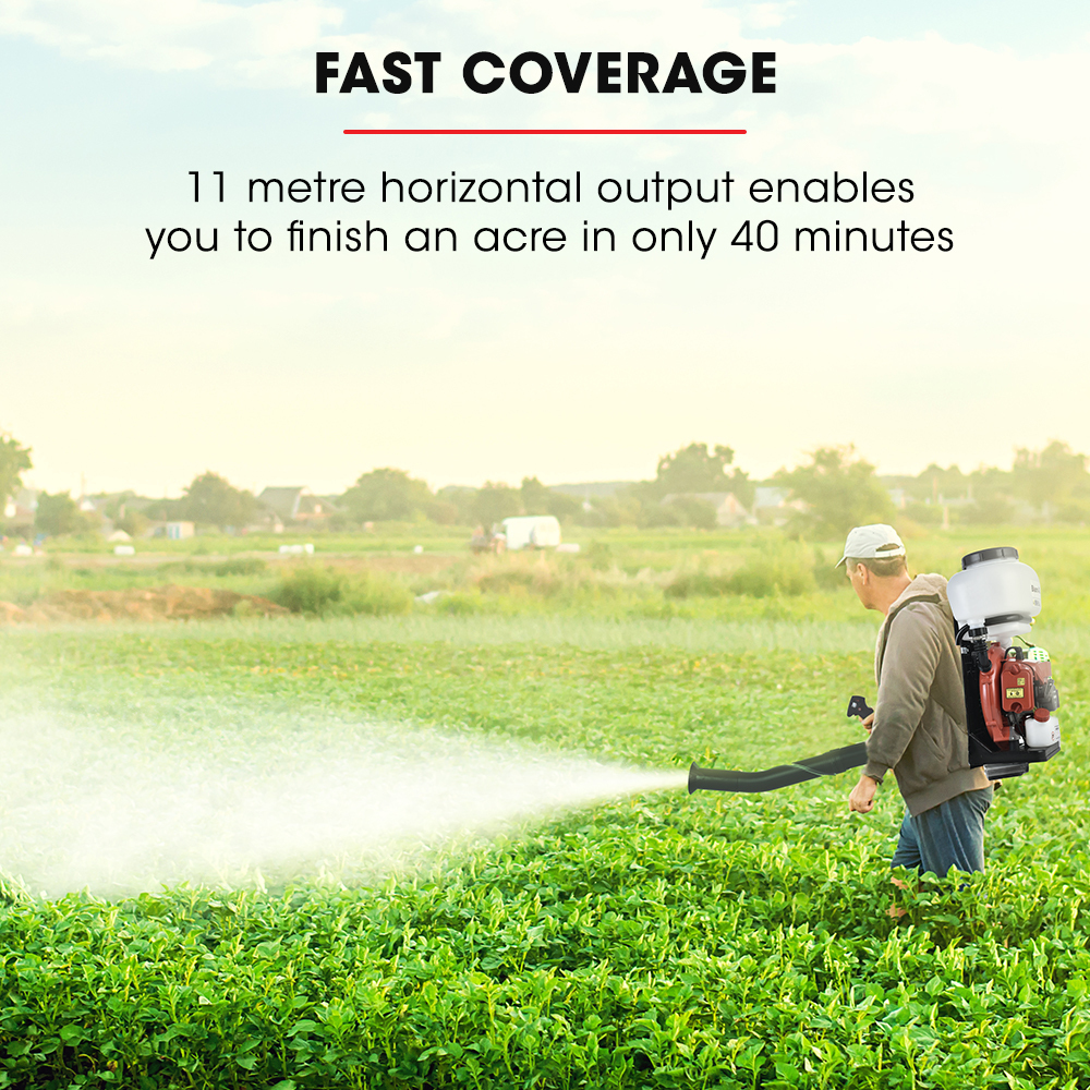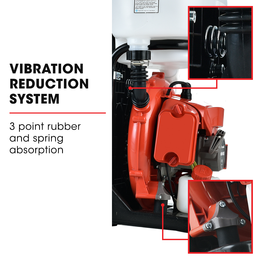 • Multifunctional design suitable for dispersing grains, disinfecting surfaces, spraying livestock, and leaf blowing