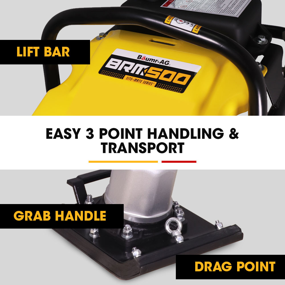 BAUMR-AG BRM-500 64KG Petrol Tamper Rammer Vibratory Plate Compactor, Lightweight, for Soil Sand Gravel Asphalt
