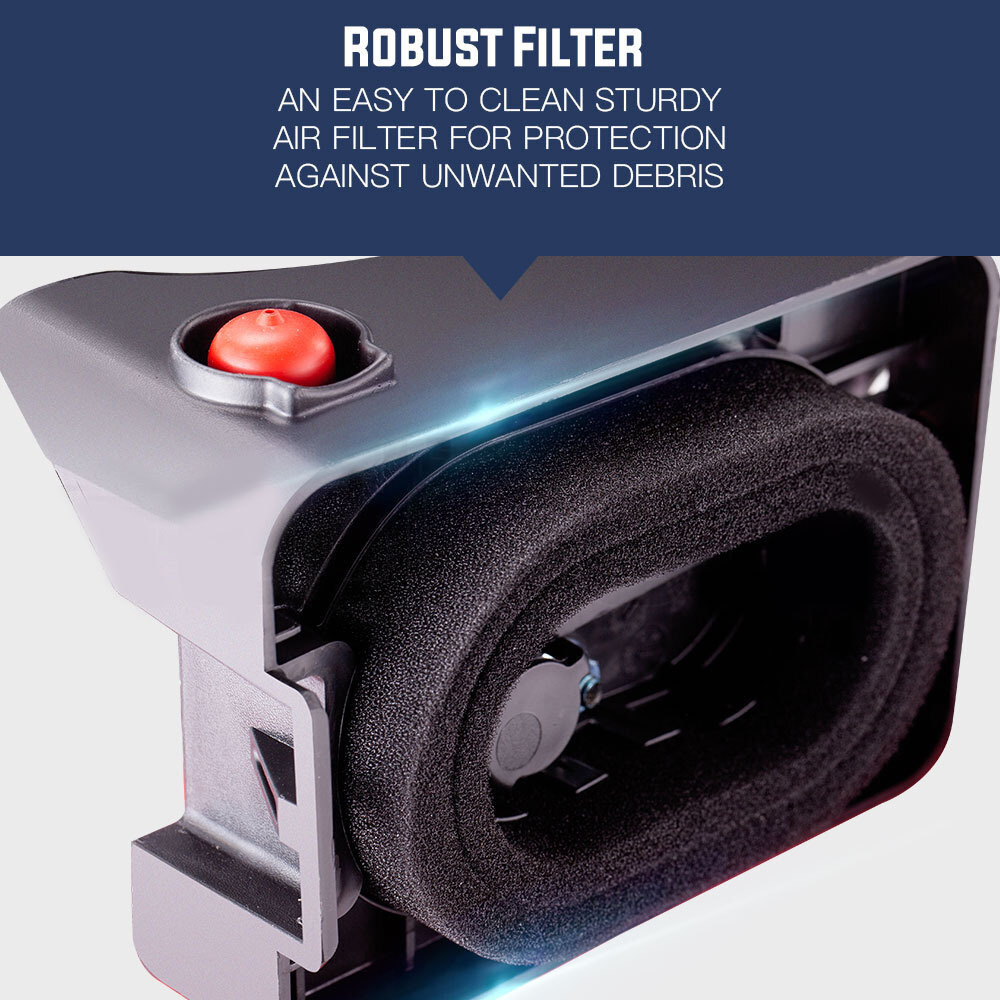 This lawn mower features a powerful 220cc four-stroke engine with advanced OHV technology, providing high performance and easy starting. It is designed for efficient and effortless lawn maintenance, suitable for tackling tough grass and various terrains. The mower offers multiple functionalities and adjustable settings to customize your mowing experience.