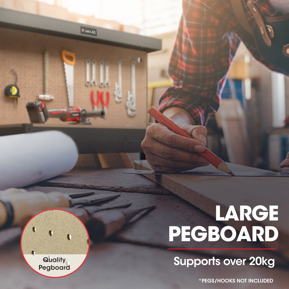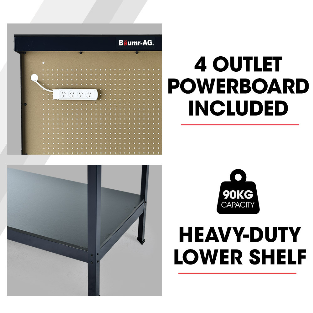 BAUMR-AG Steel Garage Workbench with LED Lights Pegboard Tool Storage Work Bench Workshop Table