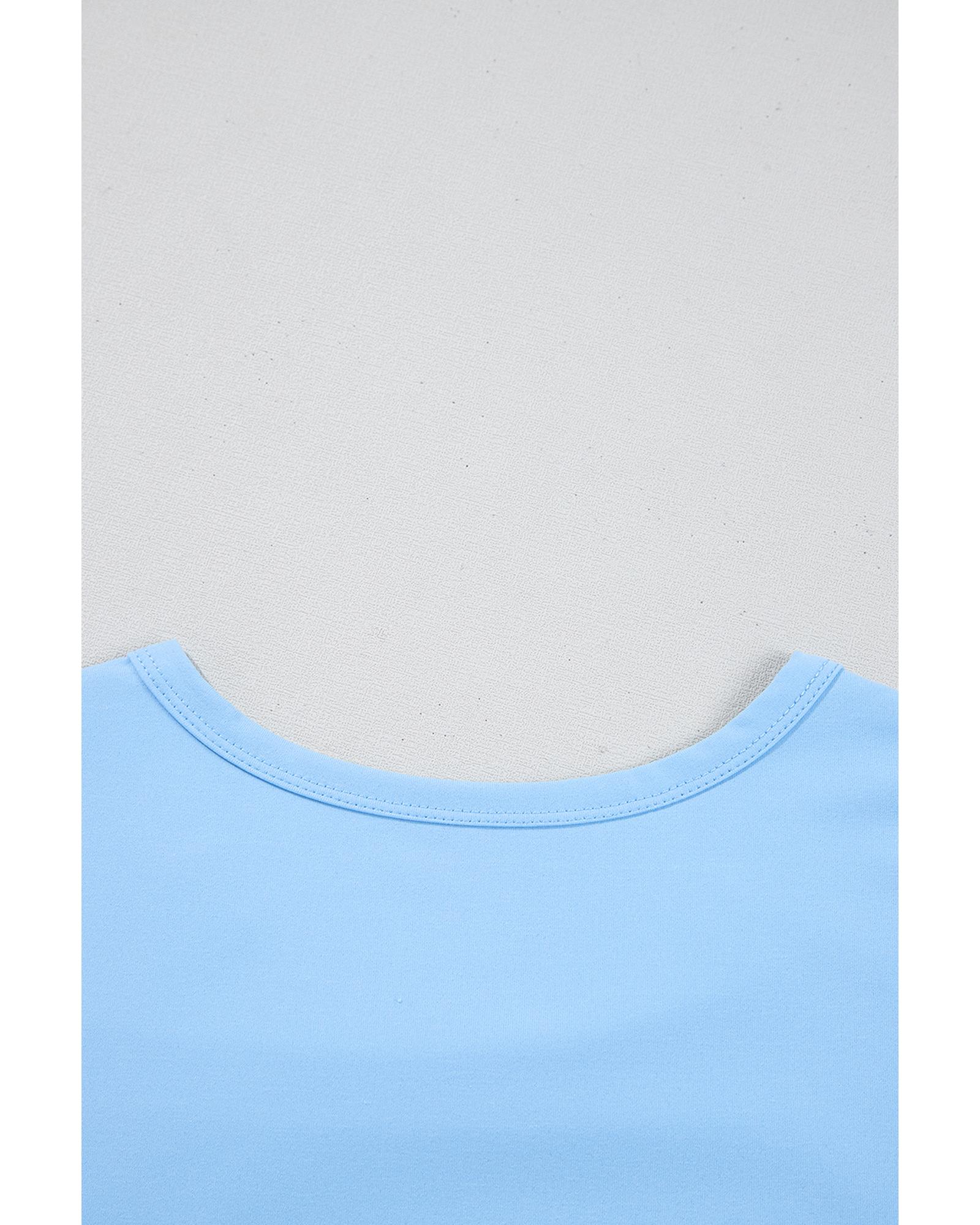 This floral mesh puff sleeve top combines elegance and femininity with its delicate design and comfortable fit. The classic crew neck and stretchy knit body make it suitable for various occasions, offering both style and comfort.
