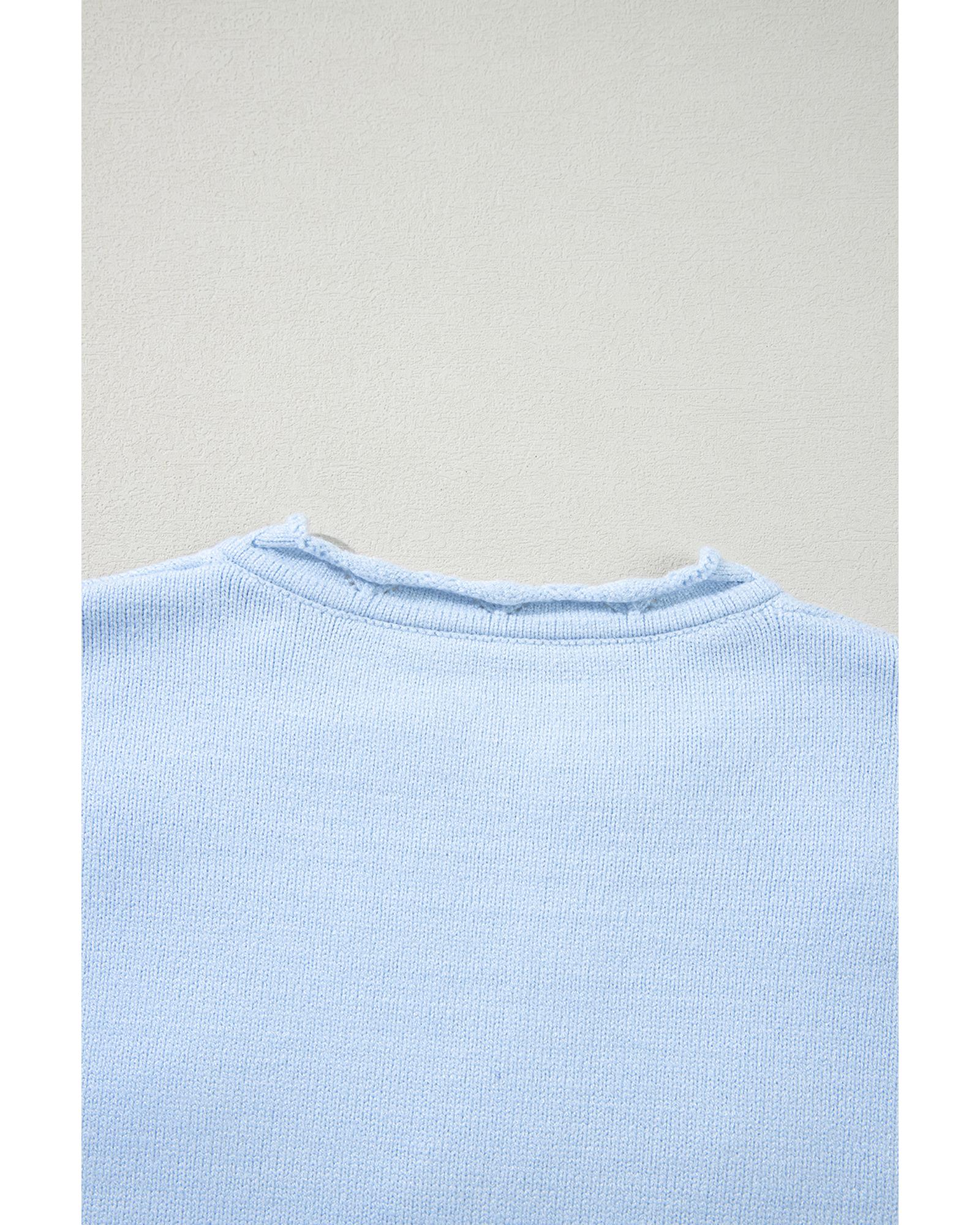 Beau Blue Flower Detail Knitted Notched Neck Sweater – XL