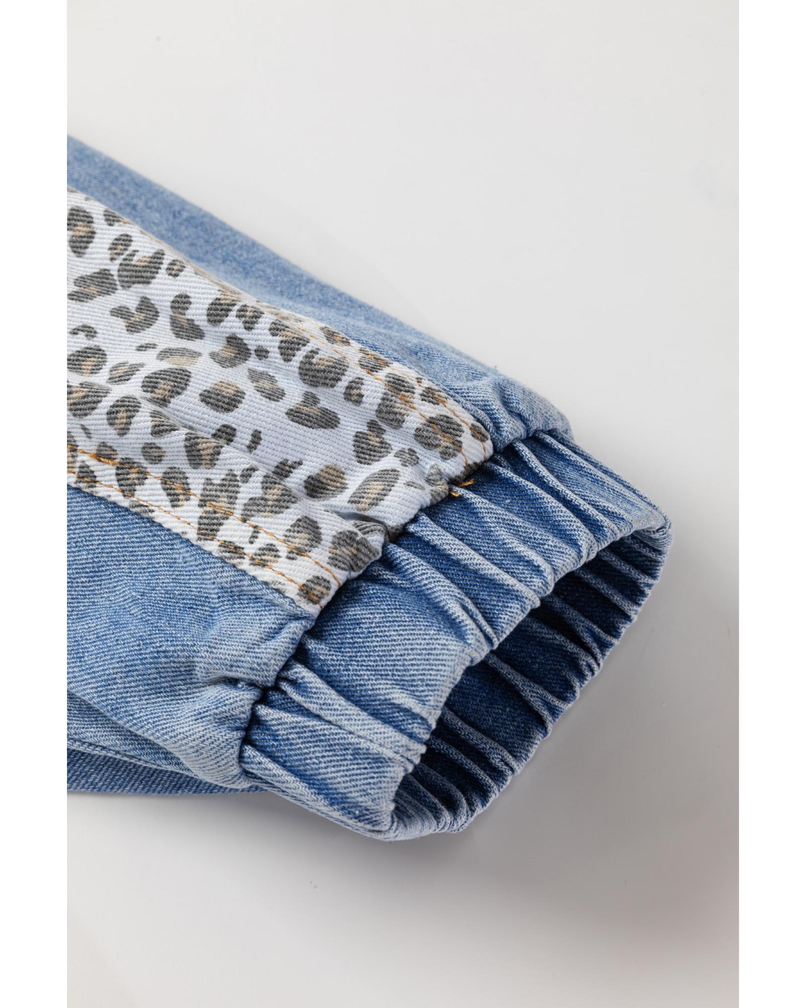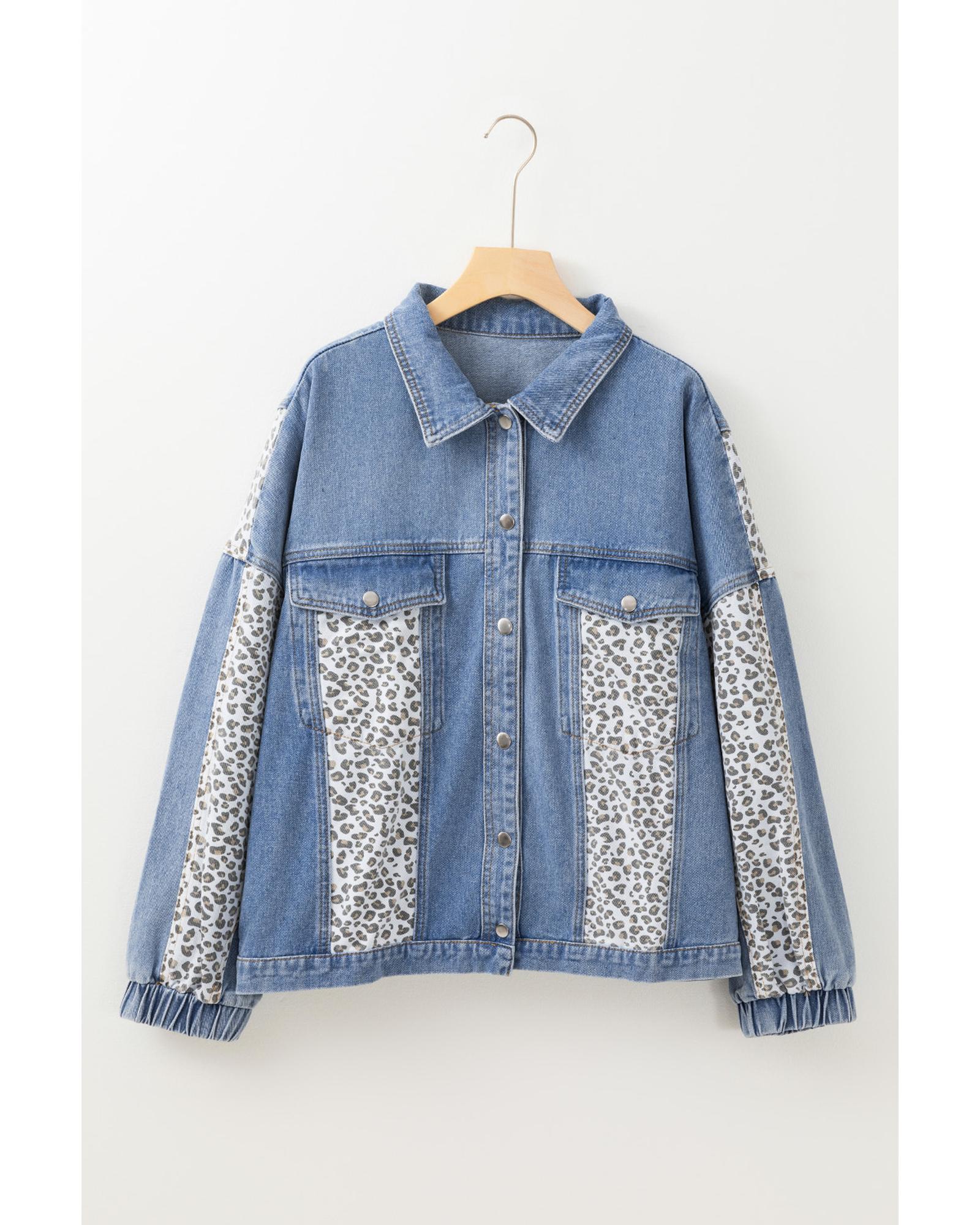 Beau Blue Leopard Patchwork Flap Detail Plus Size Denim Jacket – 3X