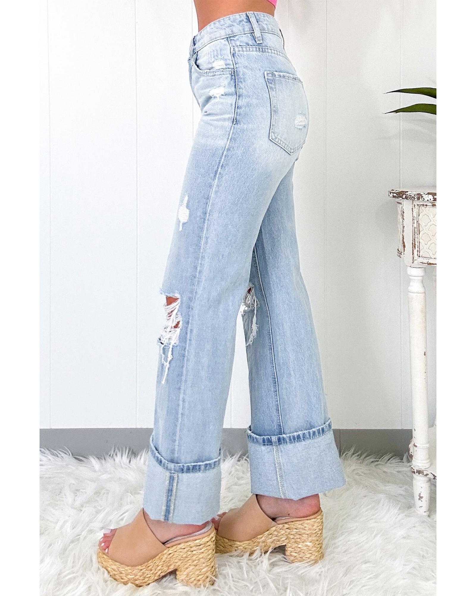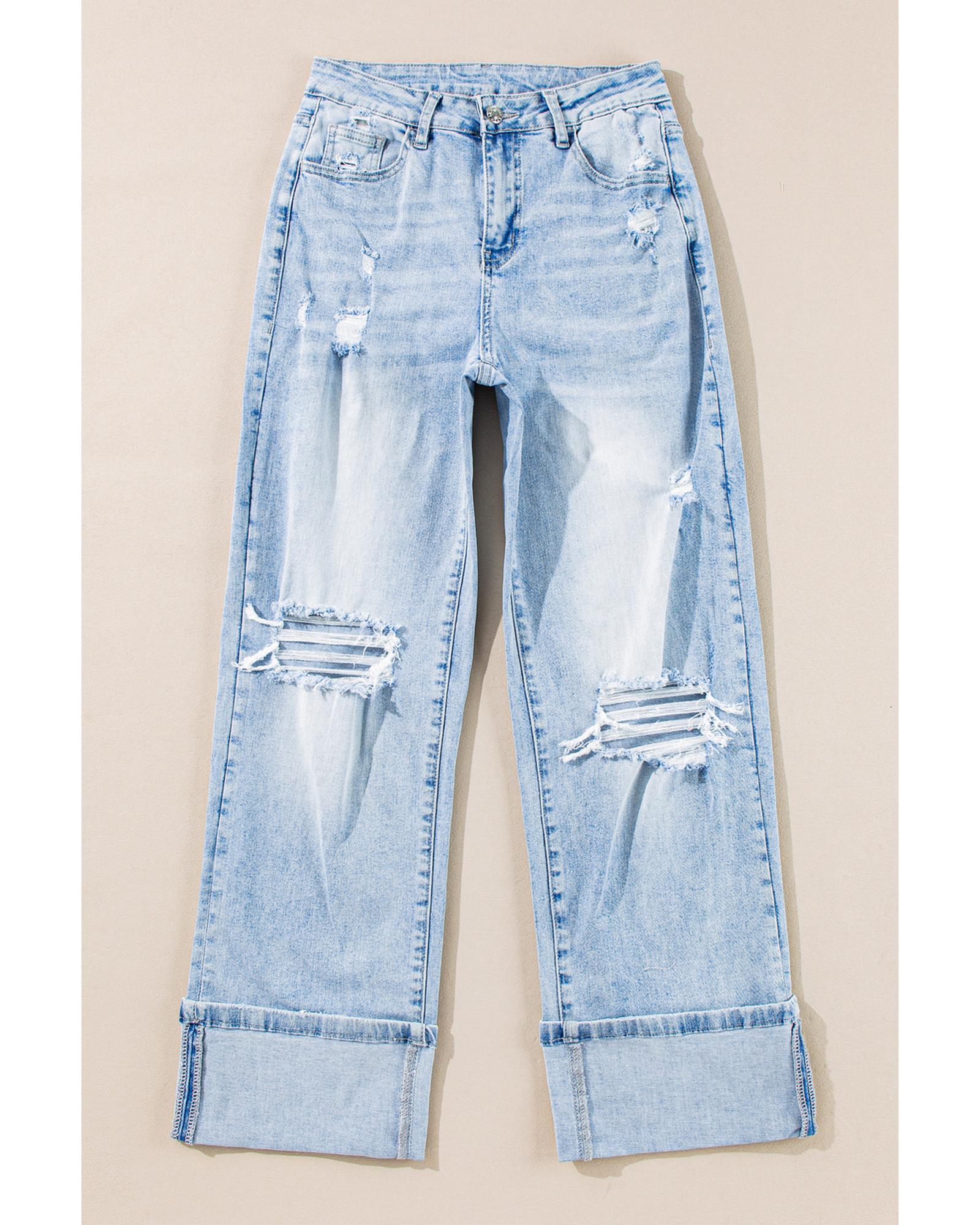 Package Content: 1 pair of distressed flare jeans