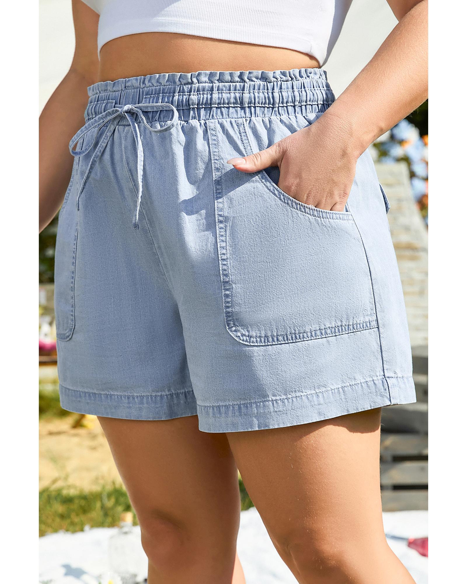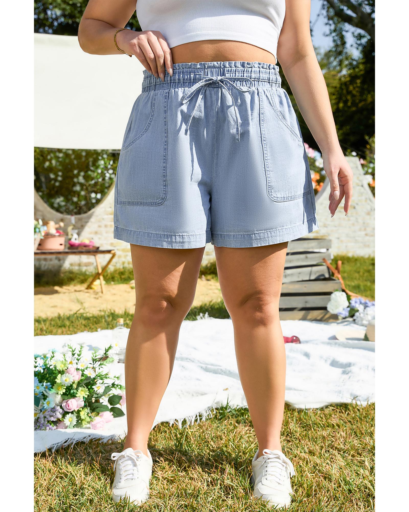 Beau Blue Pocketed Drawstring High Waist Plus Size Denim Shorts – 2X
