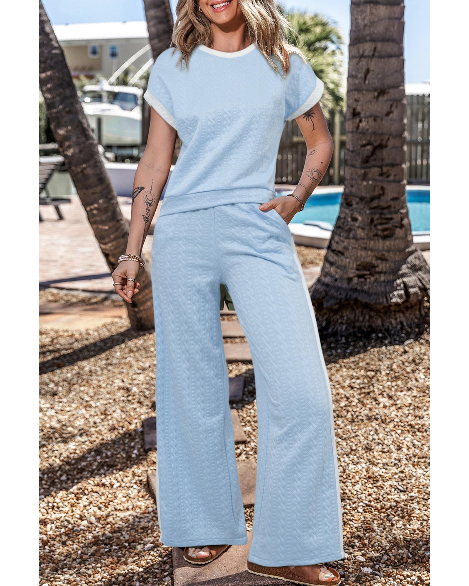 Beau Blue Textured Colorblock Edge Tank Top High Waist Pants Set – L