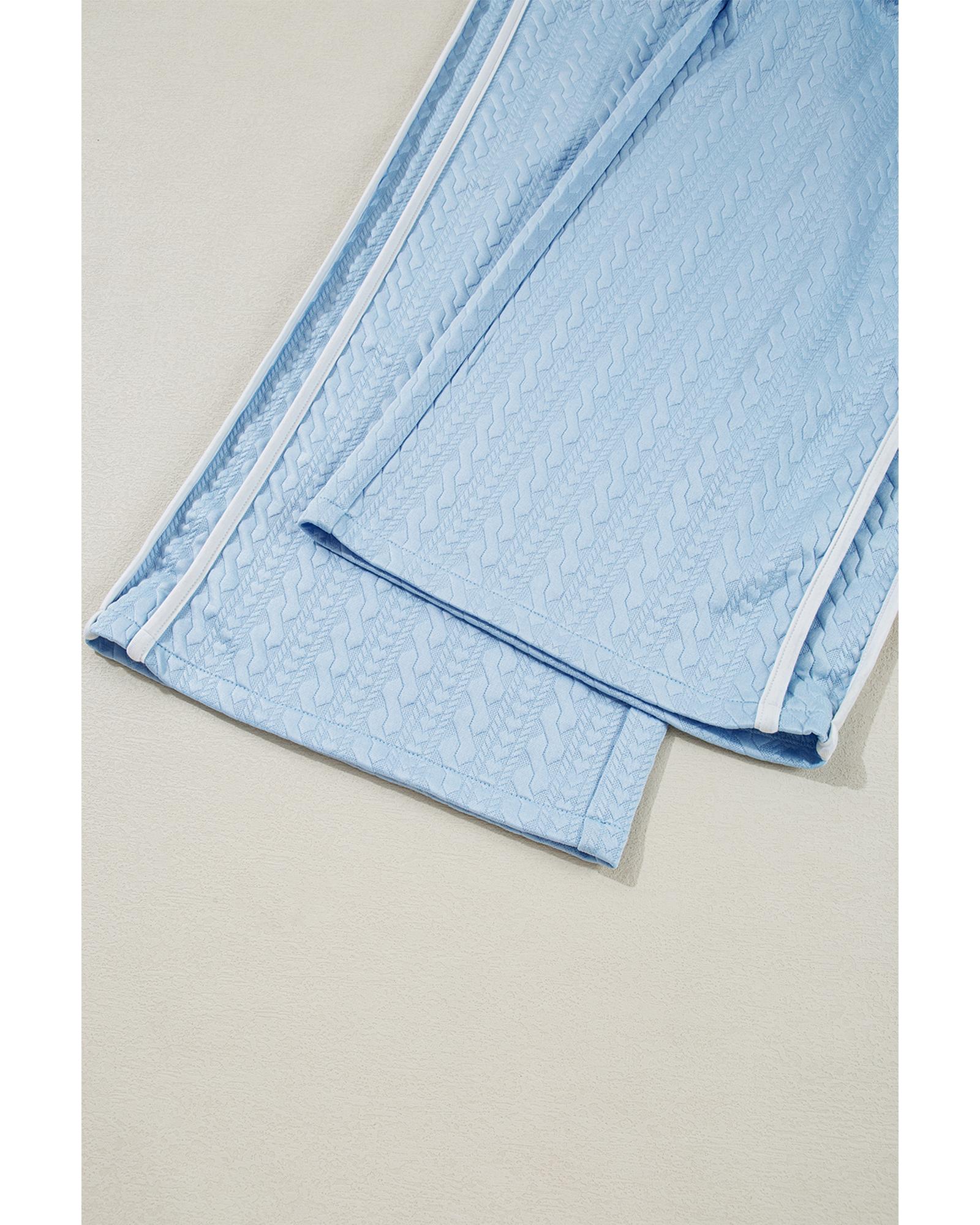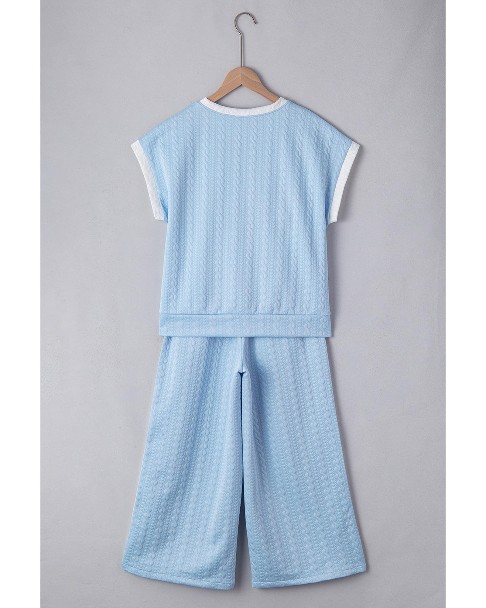 Beau Blue Textured Colorblock Edge Tank Top High Waist Pants Set – S