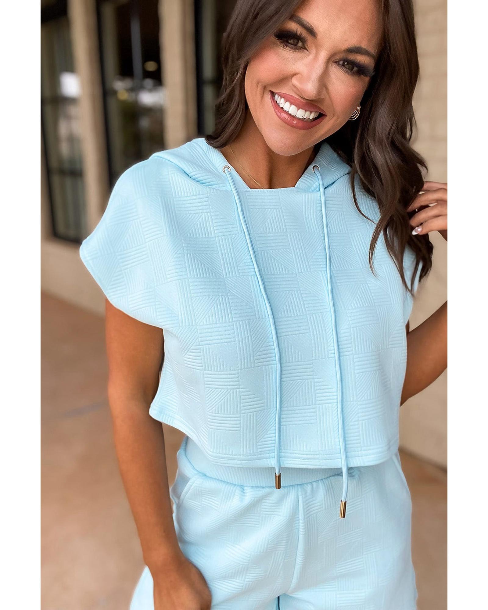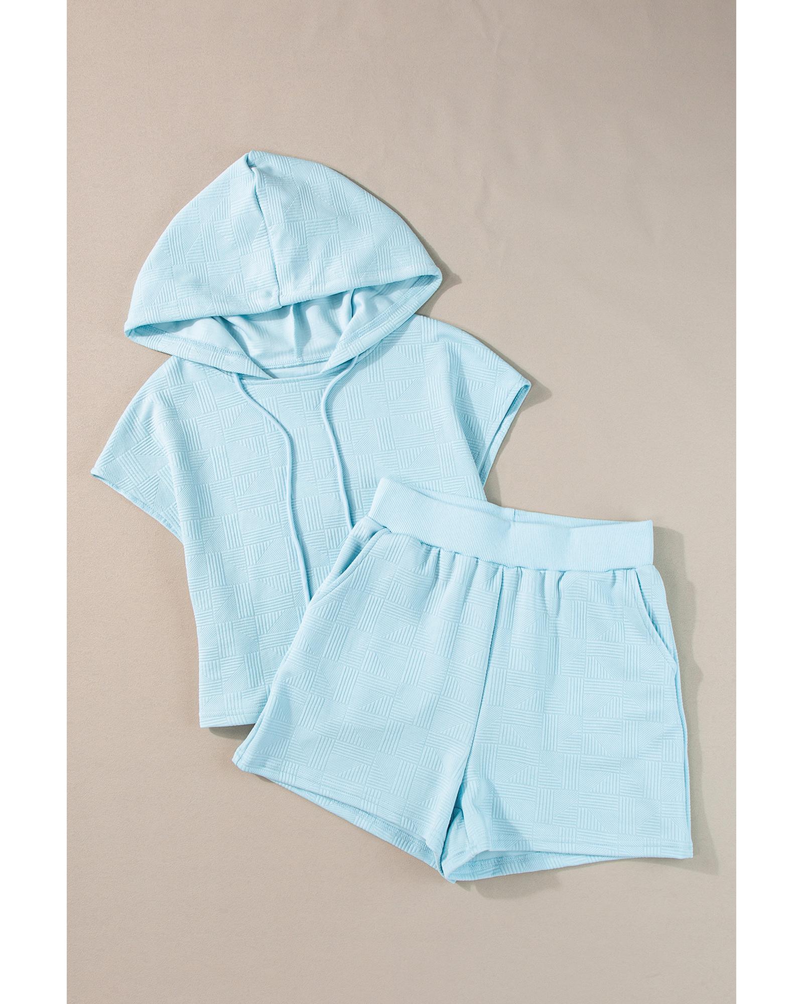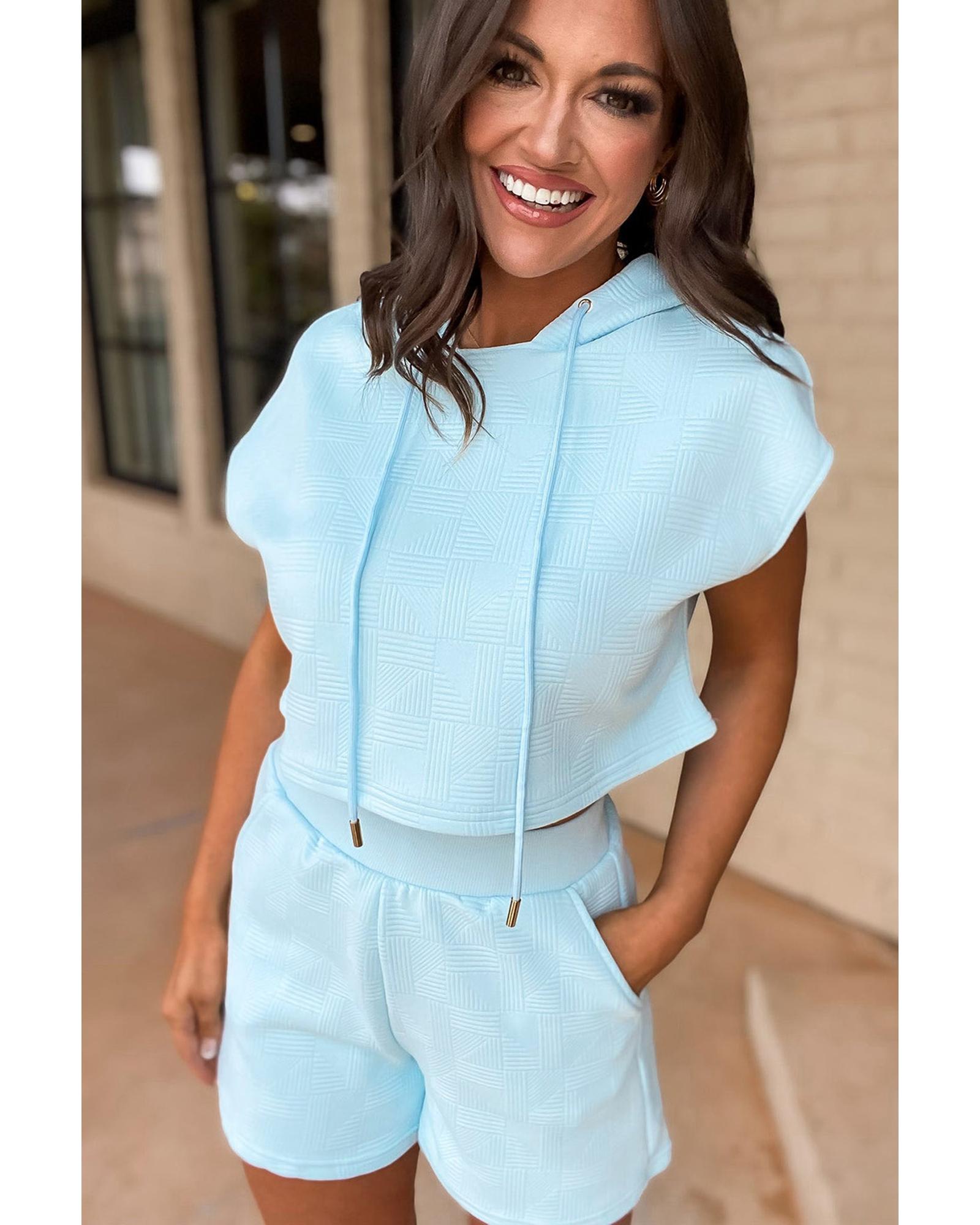 Beau Blue Textured Cropped Hoodie and Shorts Set – XL