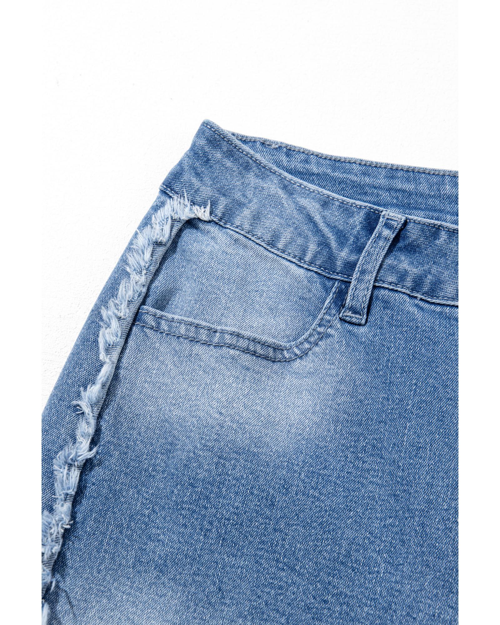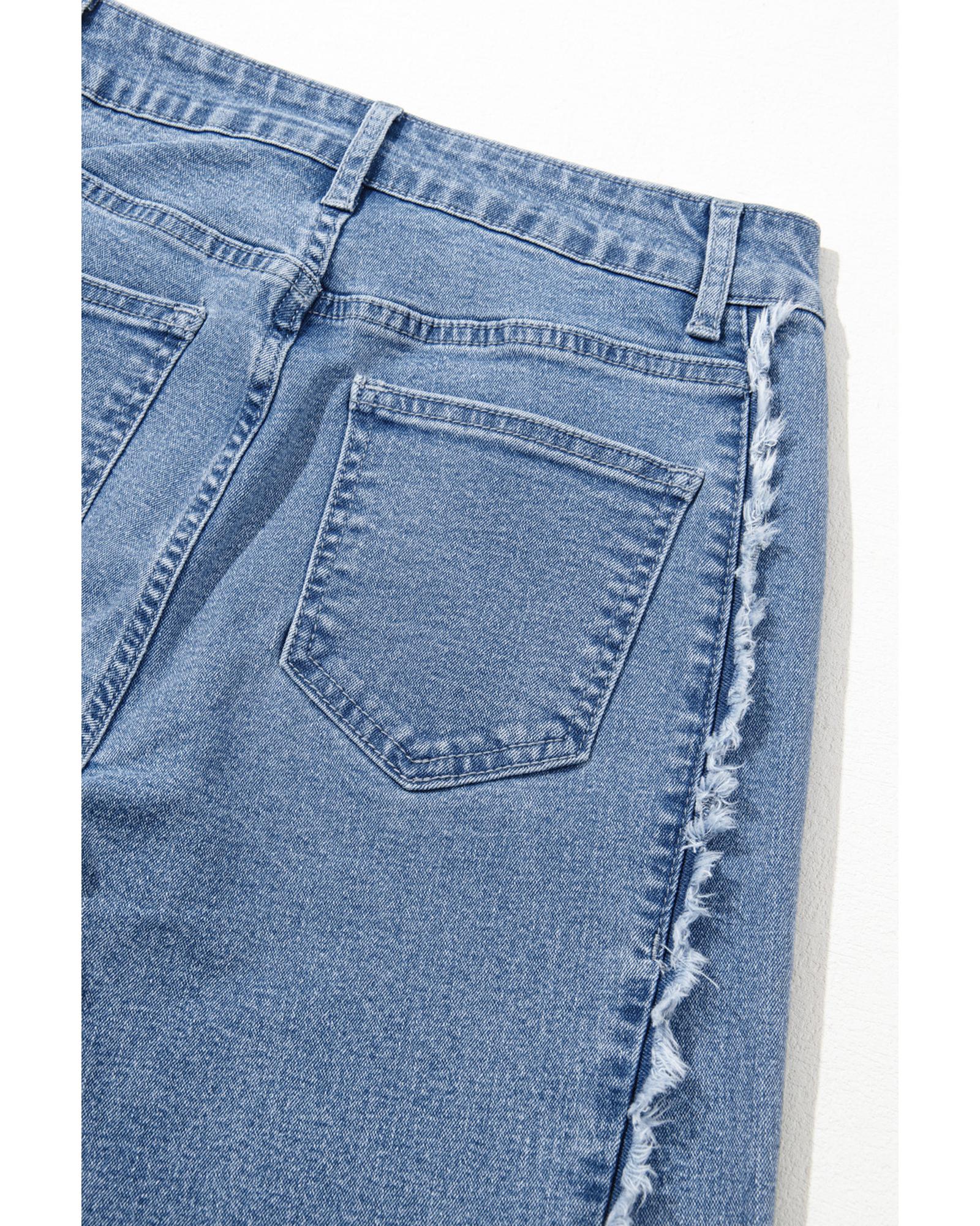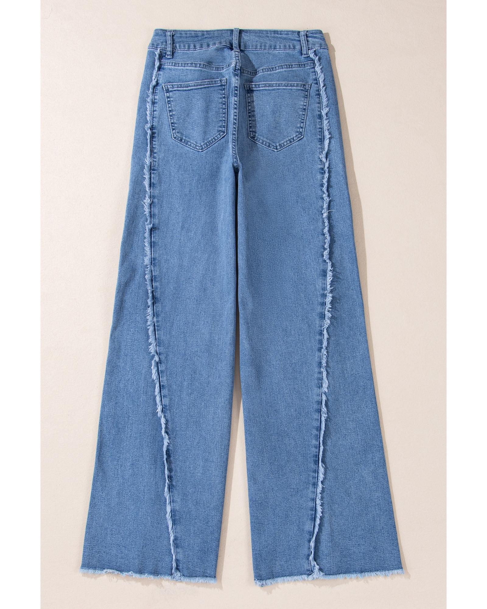 This pair of vintage-style flared jeans features distressed stitching and a raw hem for a trendy, edgy look. Designed with a fitted silhouette, these jeans offer a stylish and versatile option for casual wear. Made from high-quality denim, they provide durability and comfort, making them suitable for various outfits and occasions.