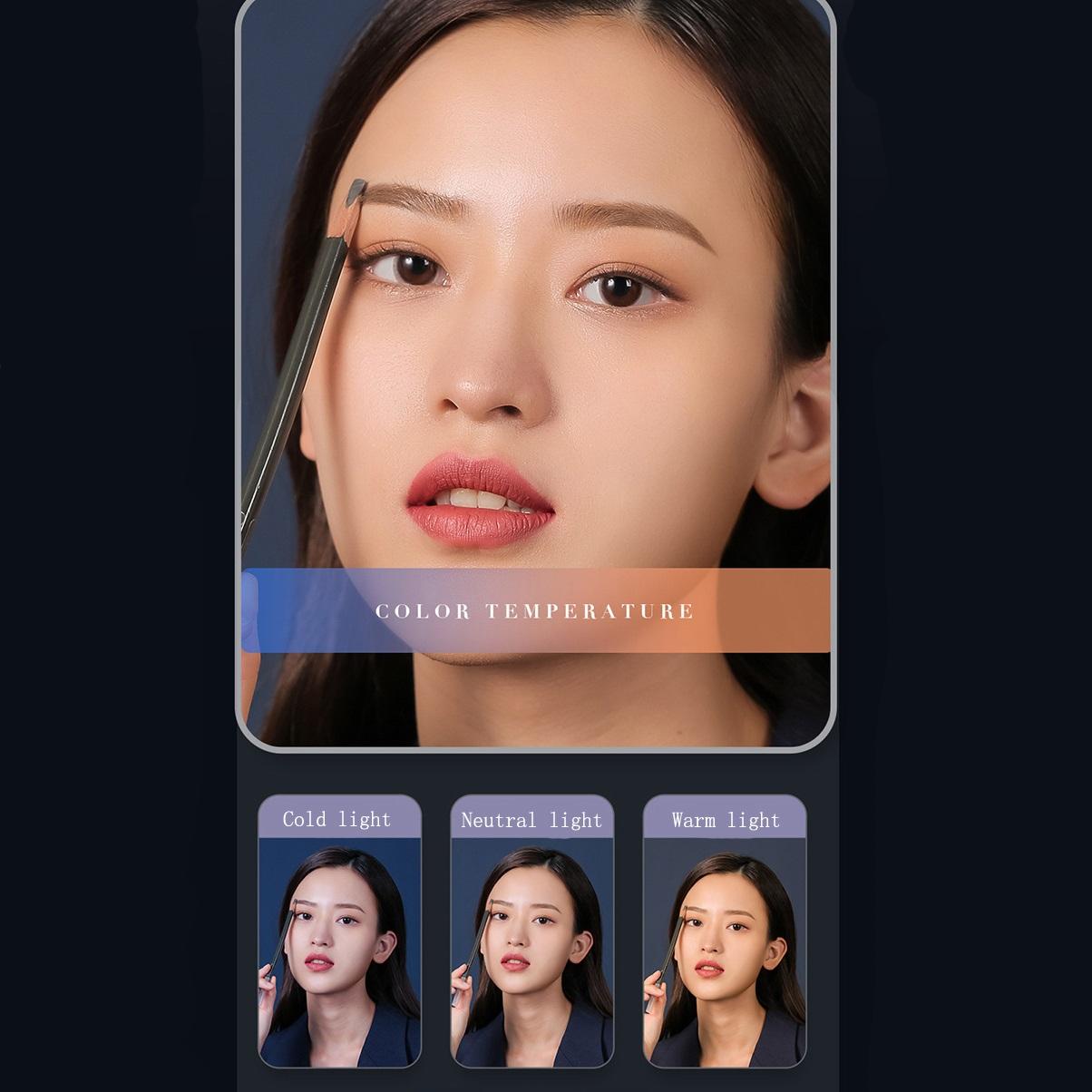 This product features a 10-inch ring light with an integrated bracket, designed for professional and personal use. It offers a rechargeable wireless fill light with adjustable orientation, making it suitable for live streaming, photography, and video recording. The compact and portable design includes a stable tripod, a built-in rechargeable battery, and multiple color temperature options to meet various lighting needs.
