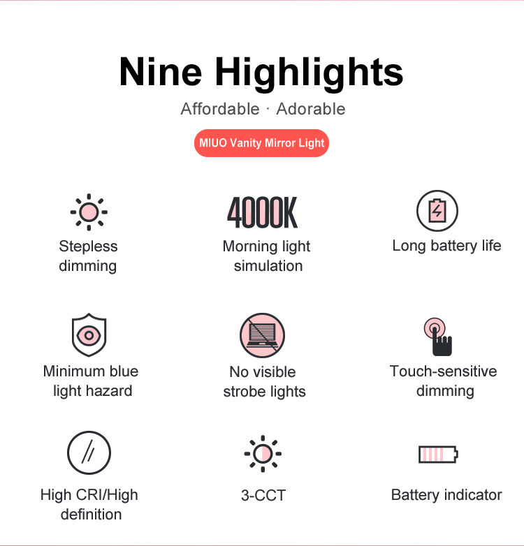 This makeup light features a sleek white design and offers adjustable lighting to suit your needs. It functions as a bedside lamp, providing convenient illumination for your daily routines. The device includes a rechargeable battery with a capacity of 1800mAh, ensuring portability and long-lasting use.