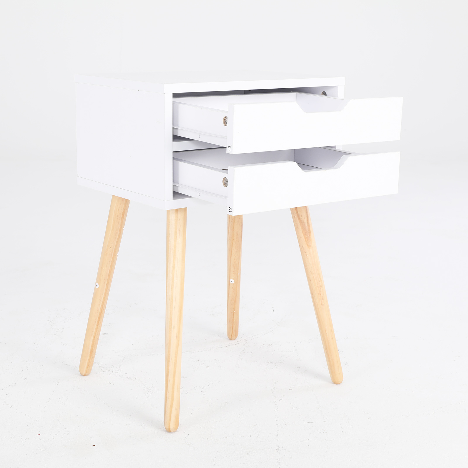 Bedside Table 2 Drawer Wood Leg Storage Cabinet Nightstand SUZY WHITE