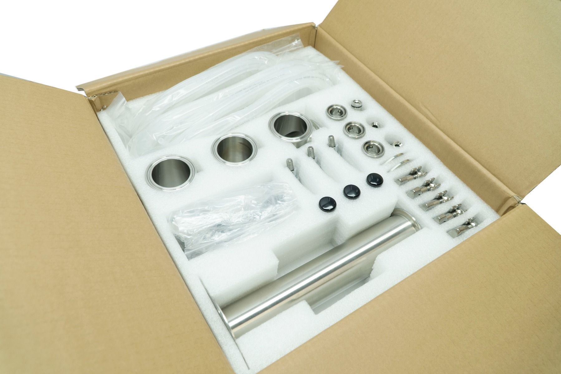 - Includes components necessary for setup, such as modular font stand pipe, tri-clover fittings, clamps, washers, adaptors, beer and gas disconnects, and a double beer line set