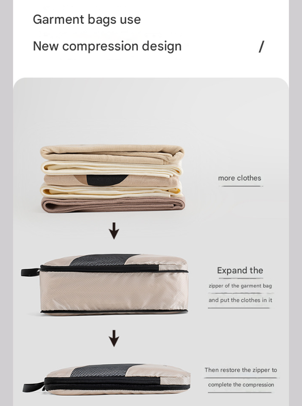 - Space-saving compression system with dual-zipper design on clothing cubes