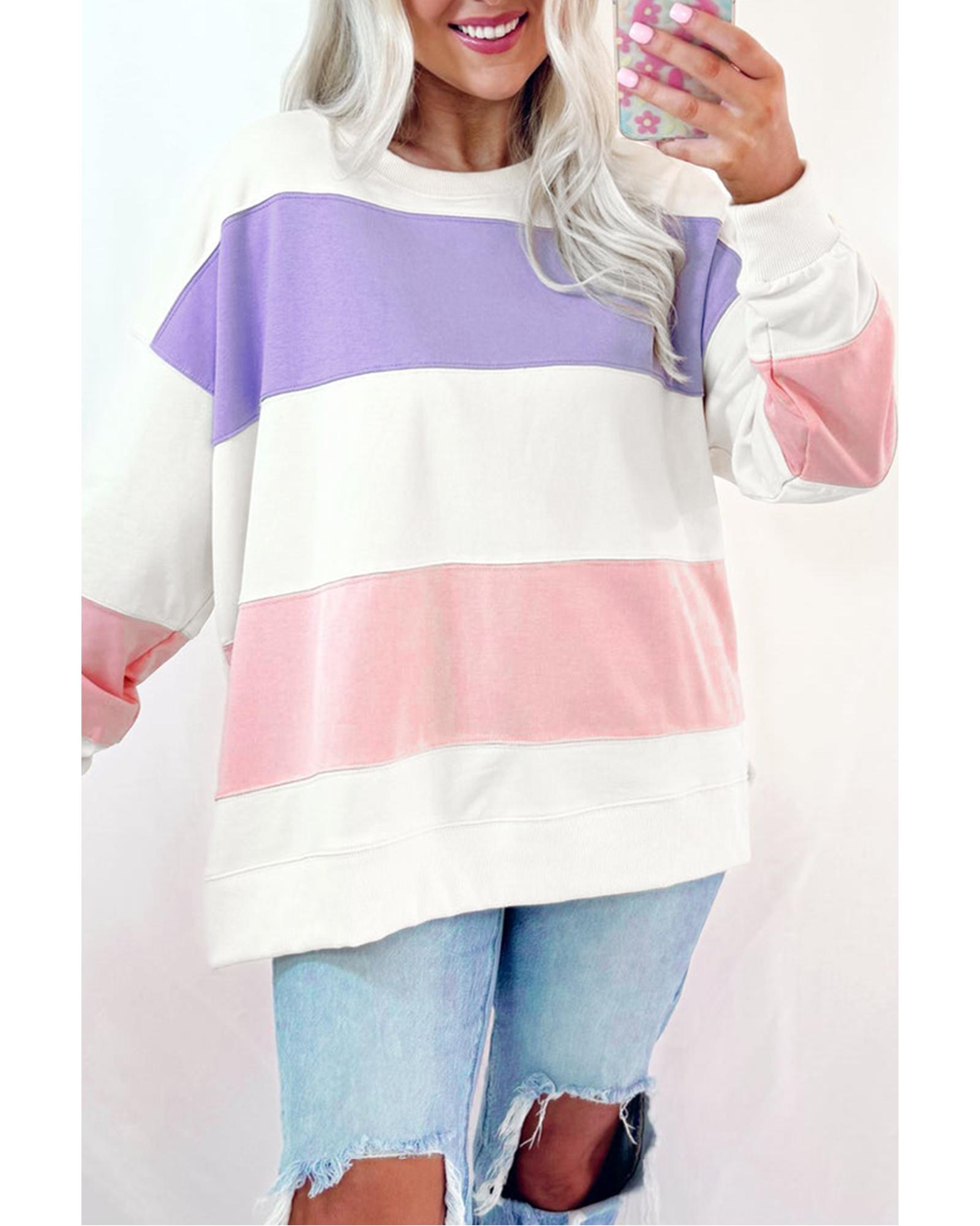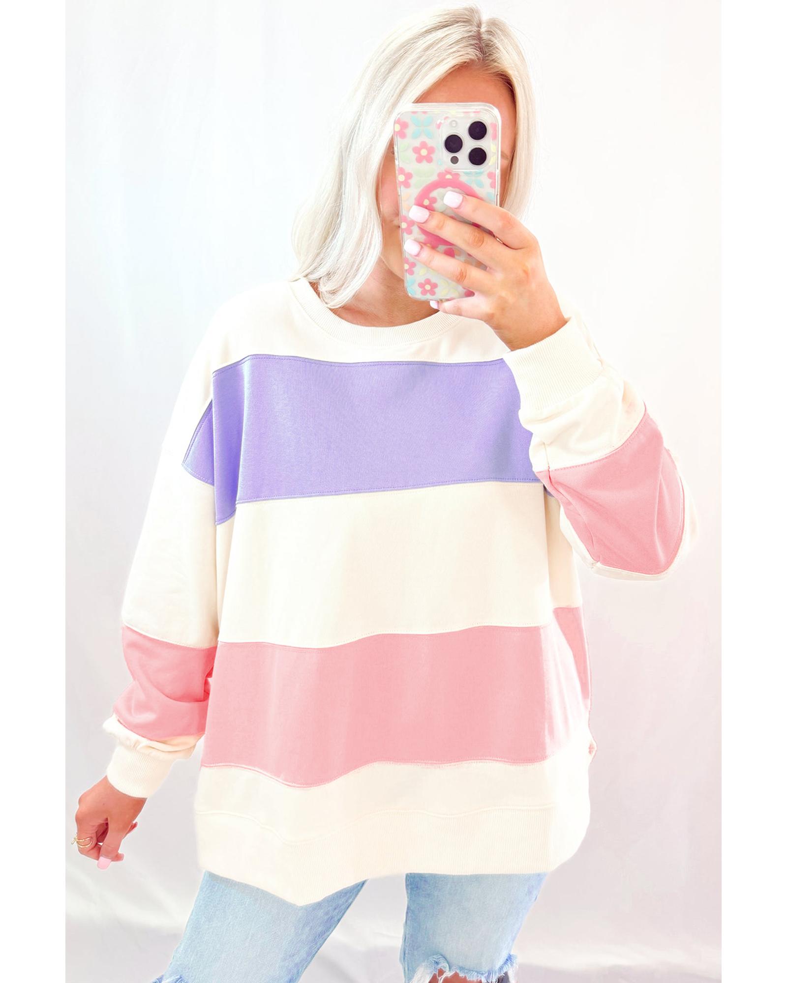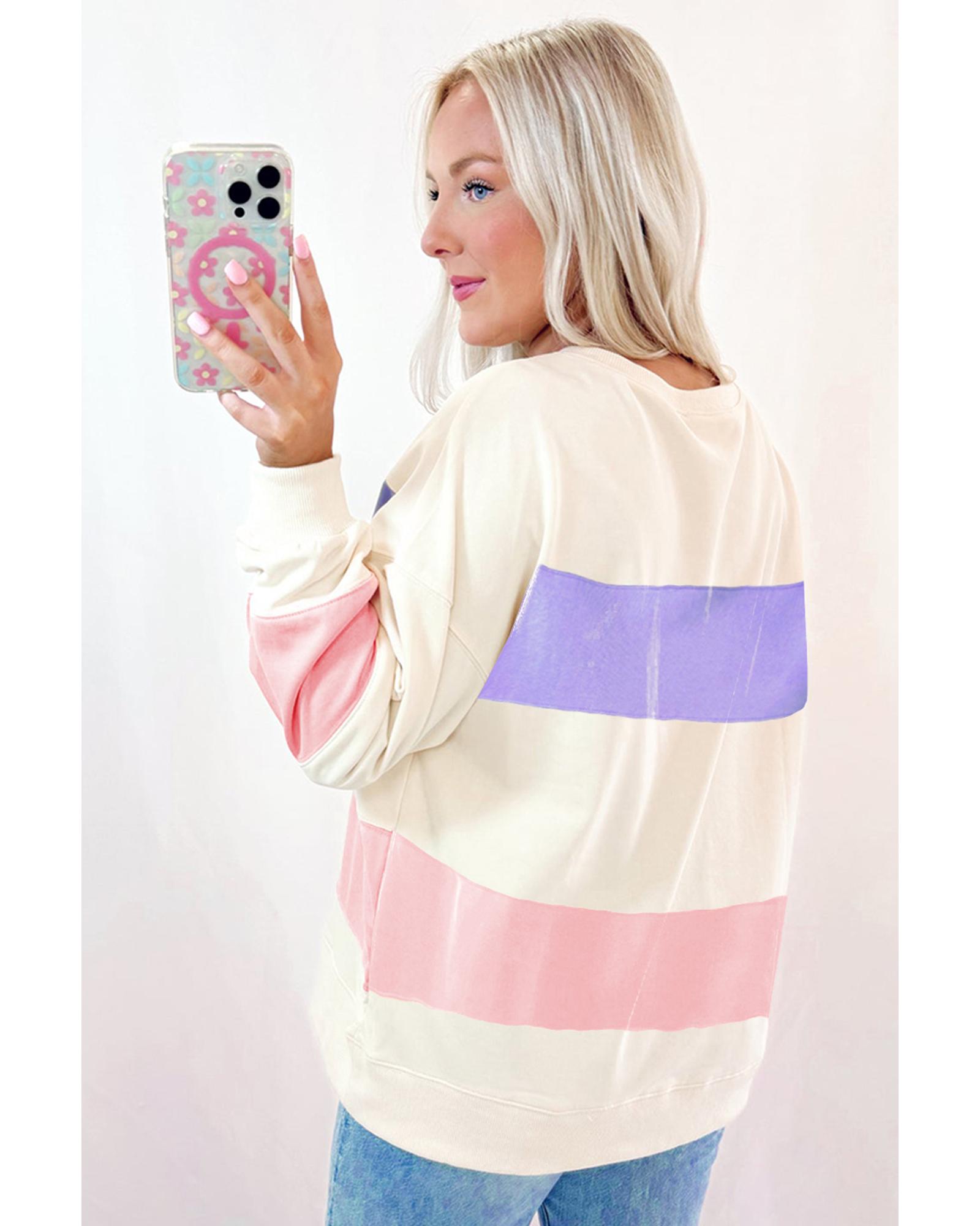 Beige Colorblock Patchwork Drop Shoulder Crewneck Sweatshirt – XL