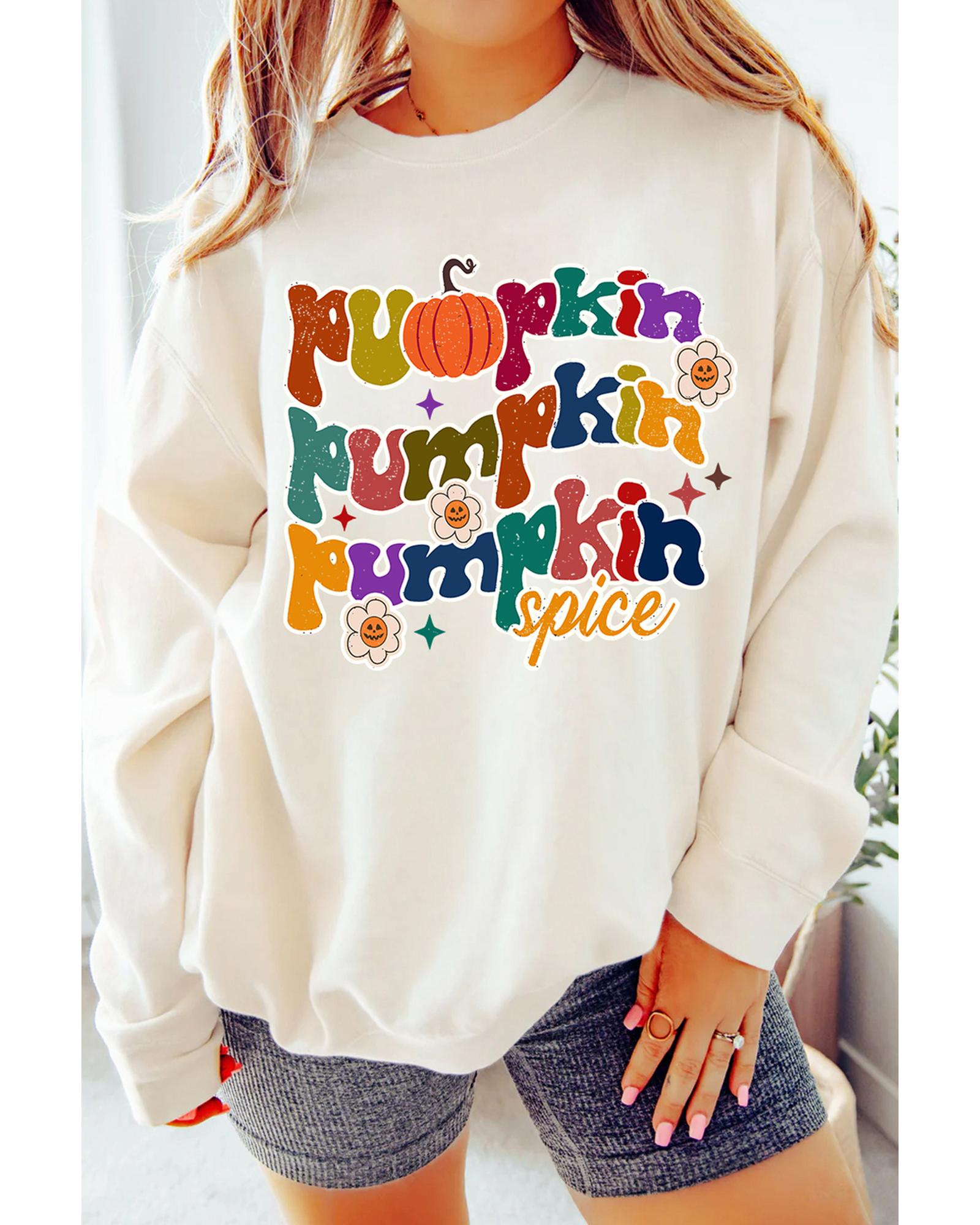 Beige Cute Pumpkin Spice Graphic Thanksgiving Sweatshirt – 2XL
