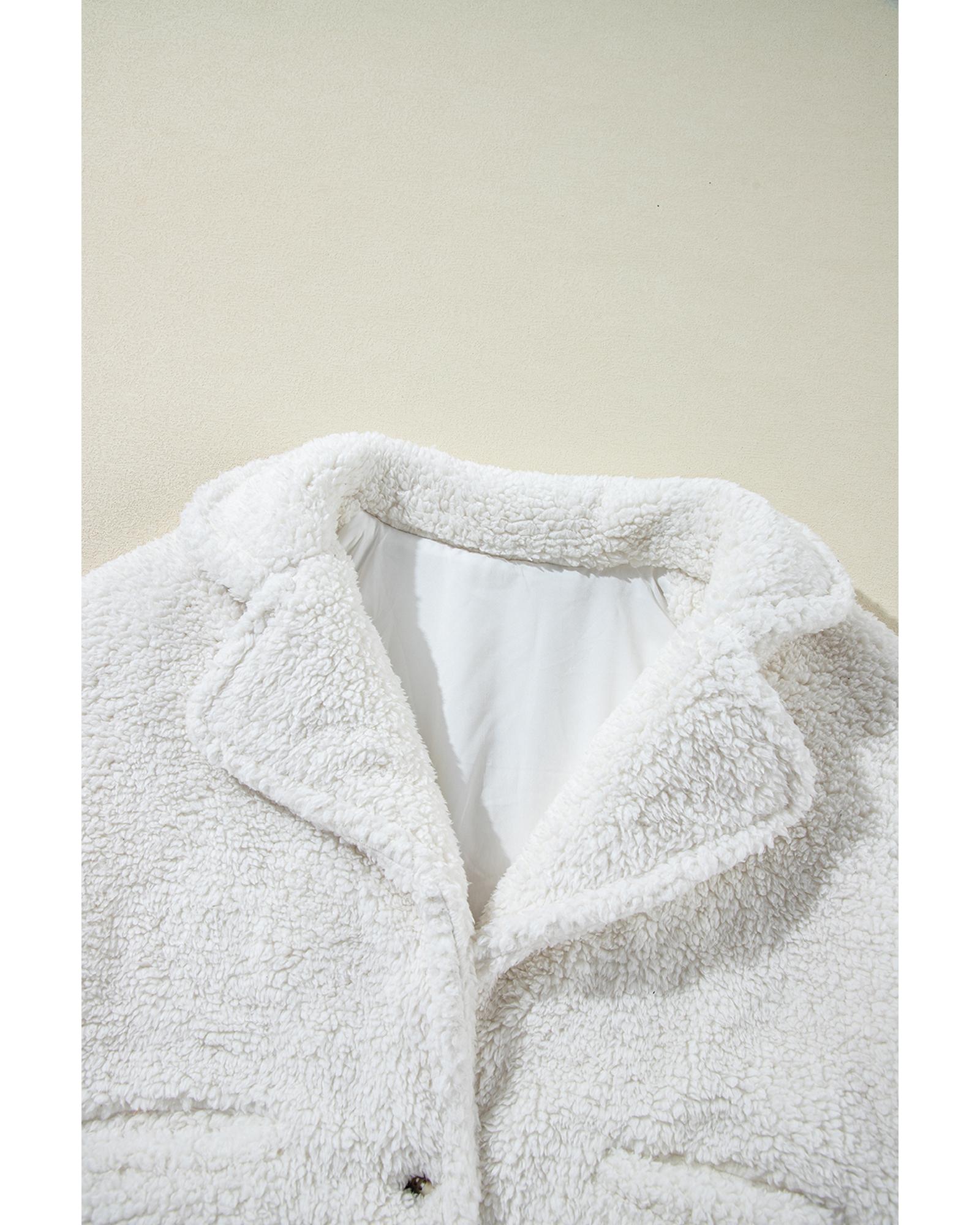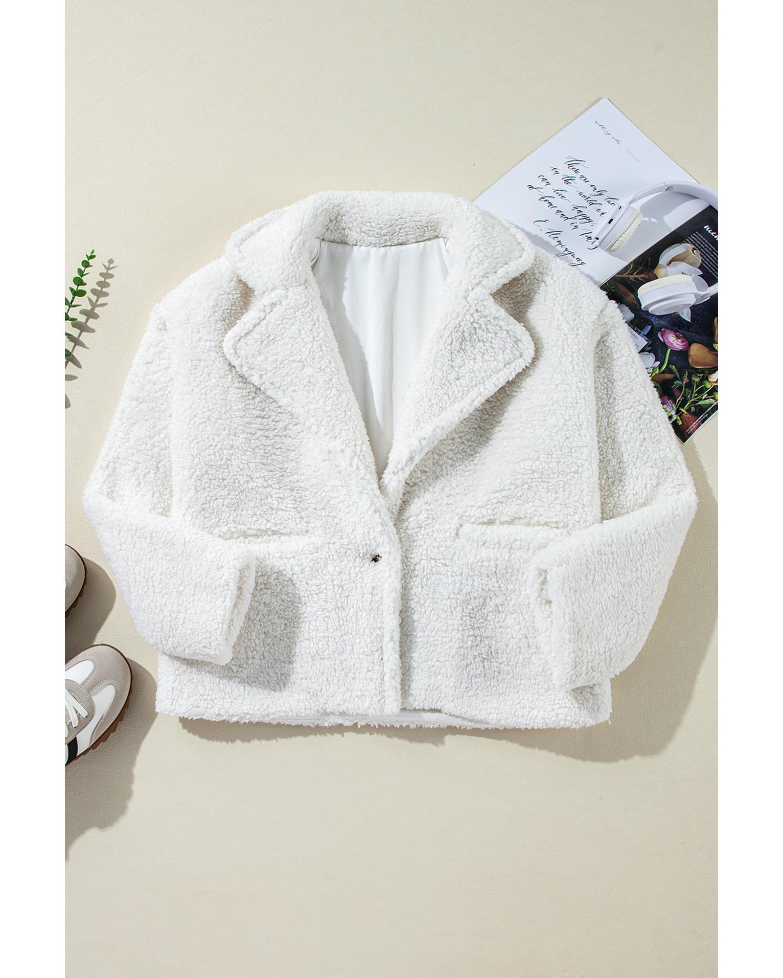- 1 Beige Faux Fur Button Pocketed Lapel Collar Jacket