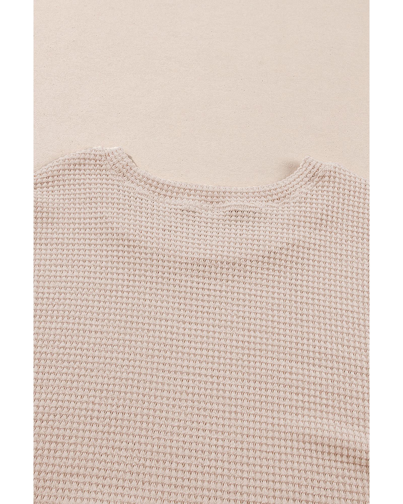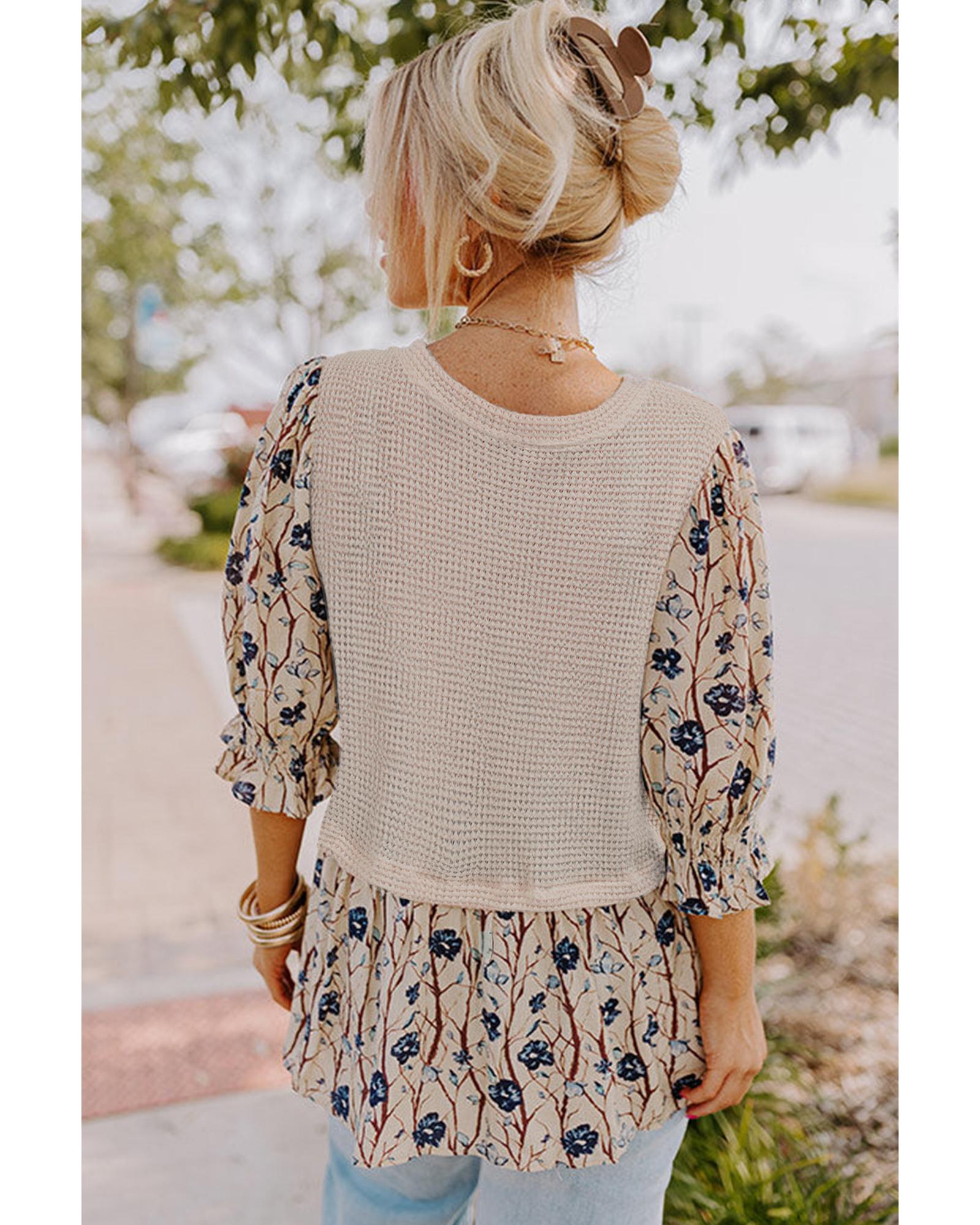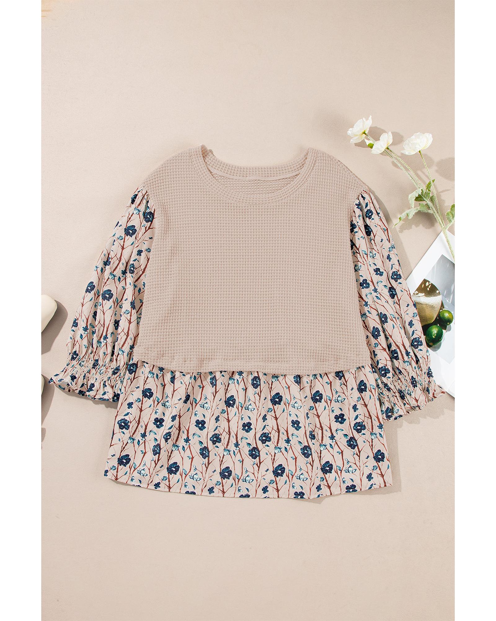 Beige Faux Two Piece Knit Patchwork Floral Print Plus Size Top – 1X