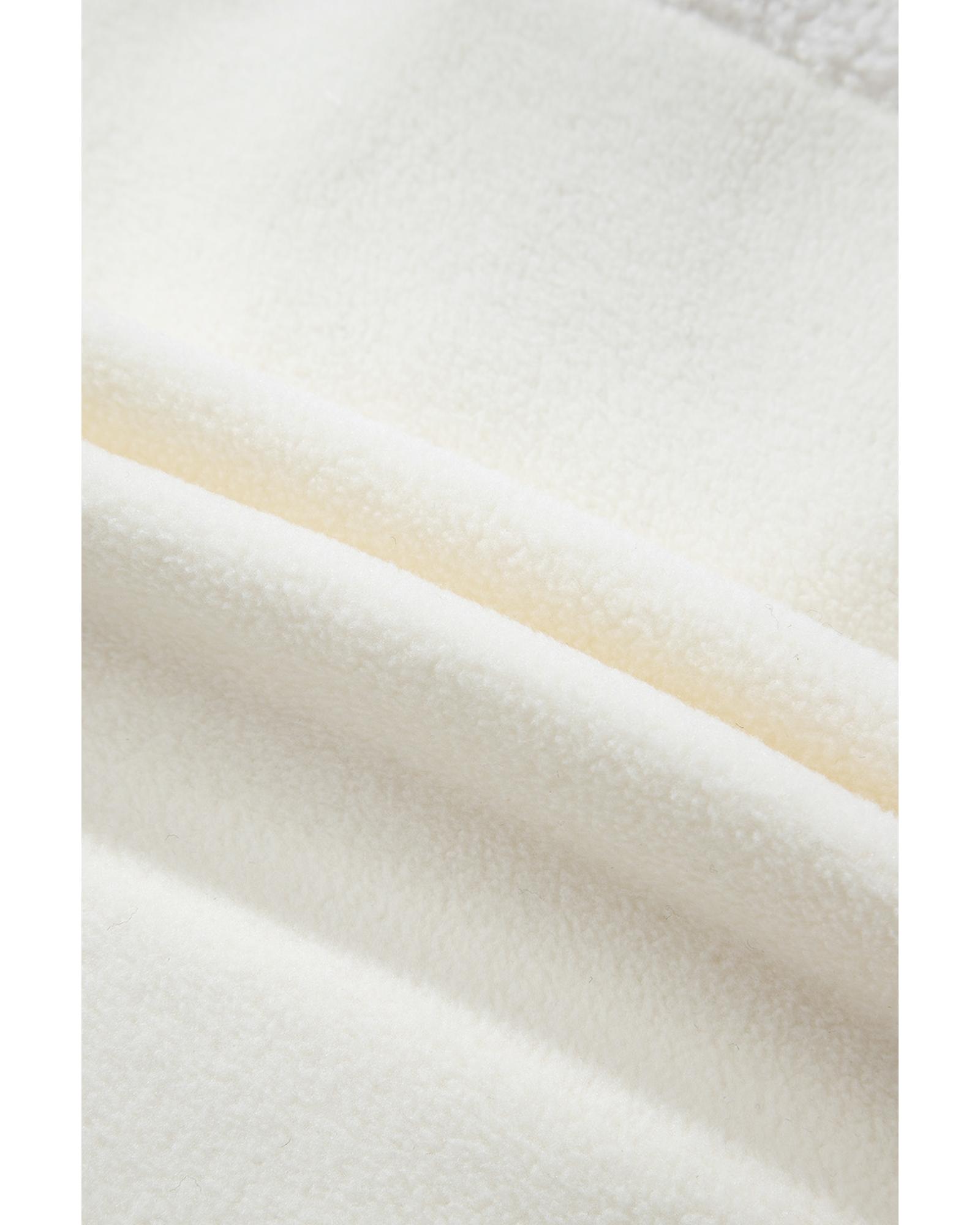 This beige fleece sweatshirt features a colorblock trim design with button collar and a convenient pocket, offering a casual and stylish look. Its trendy fitted silhouette is complemented by high-quality fleece textures, making it suitable for everyday wear.