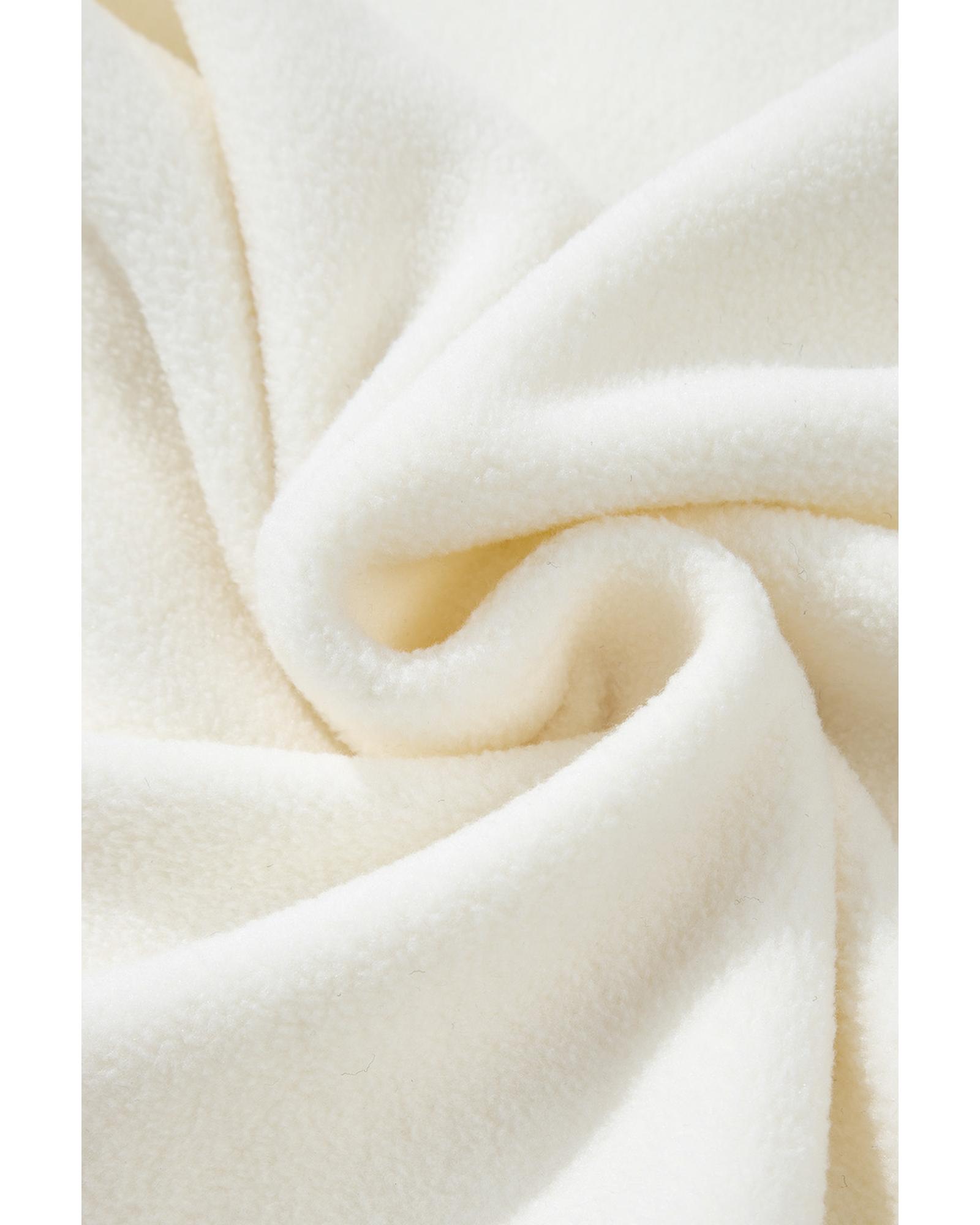 This beige fleece sweatshirt features a colorblock trim, button collar, and a convenient pocket, combining casual style with comfort. Its trendy fitted design makes it suitable for various casual occasions, and the contrast trim adds a vibrant touch to the overall look.