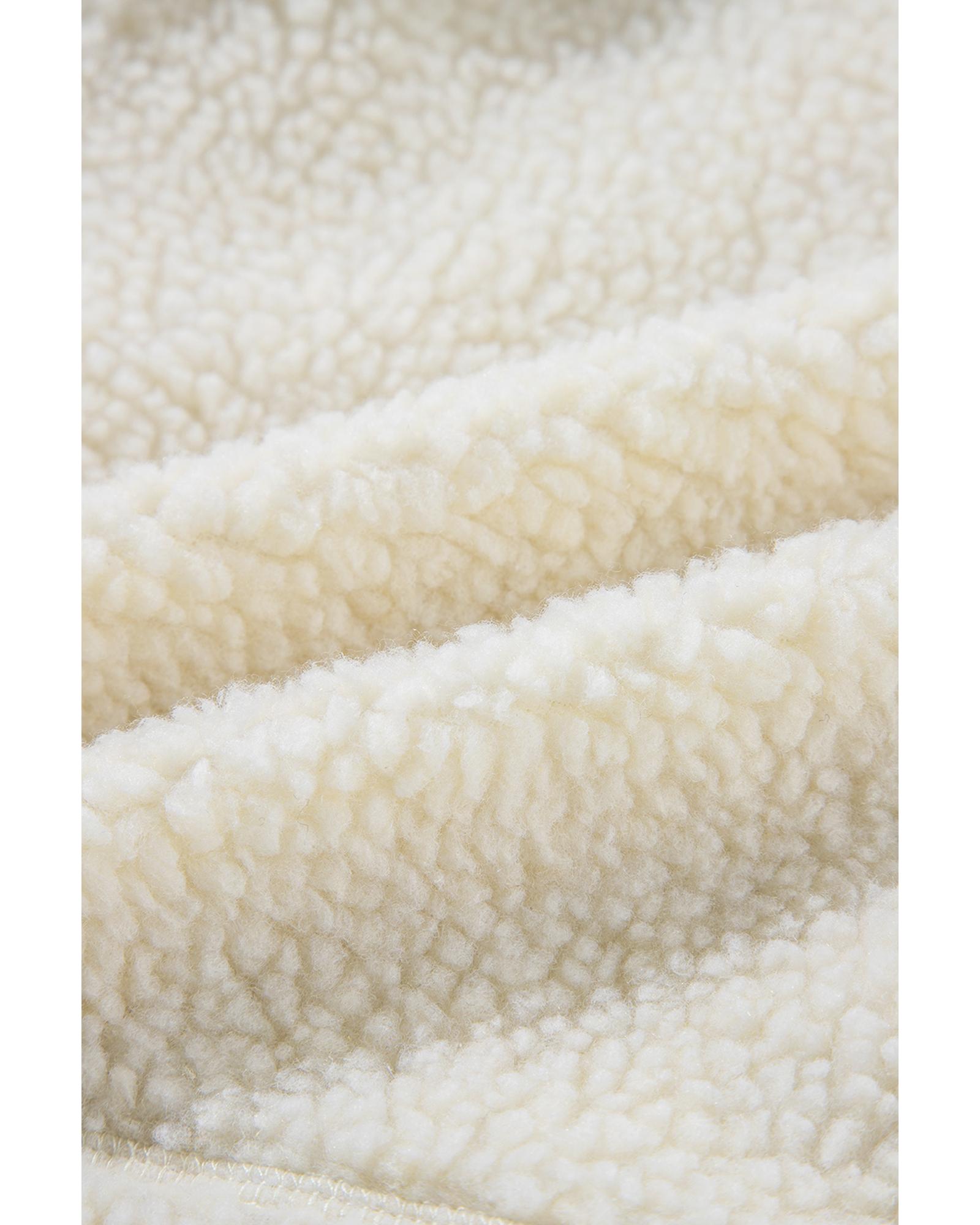 Beige Fleece Zip Up Drawstring Hooded Pocketed Jacket - XL