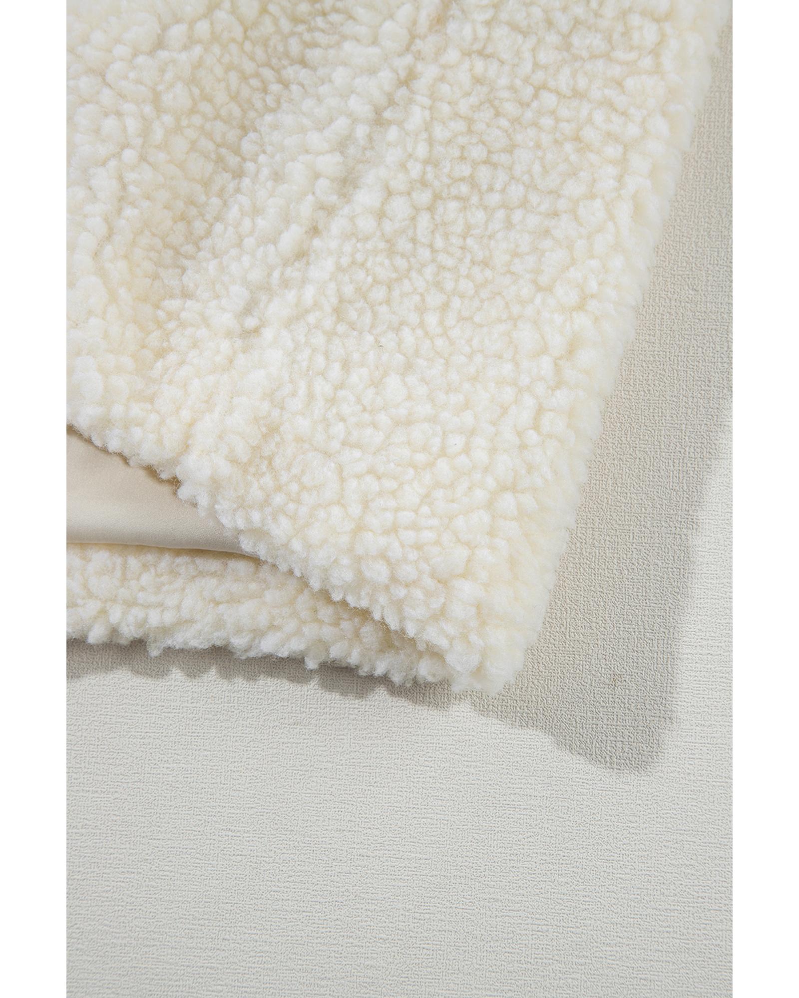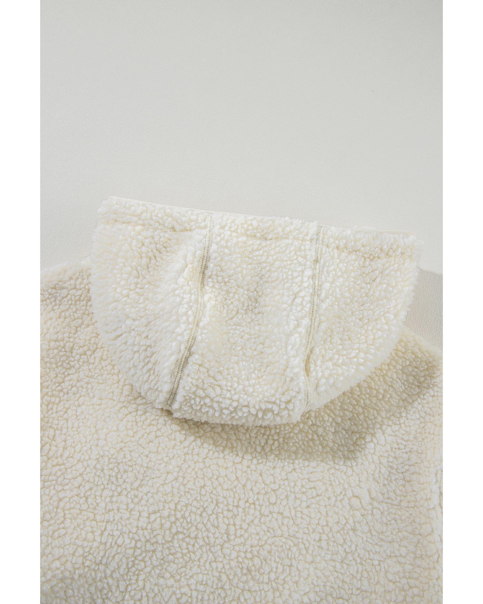 Beige Fleece Zip Up Drawstring Hooded Pocketed Jacket – S