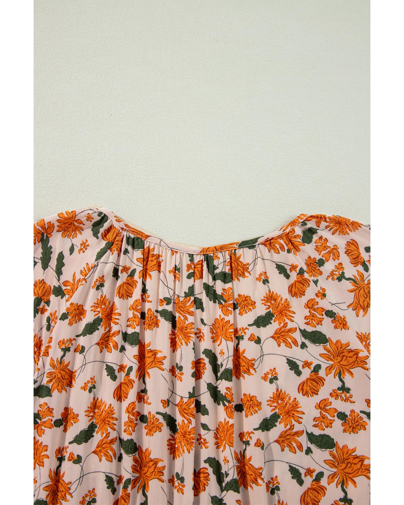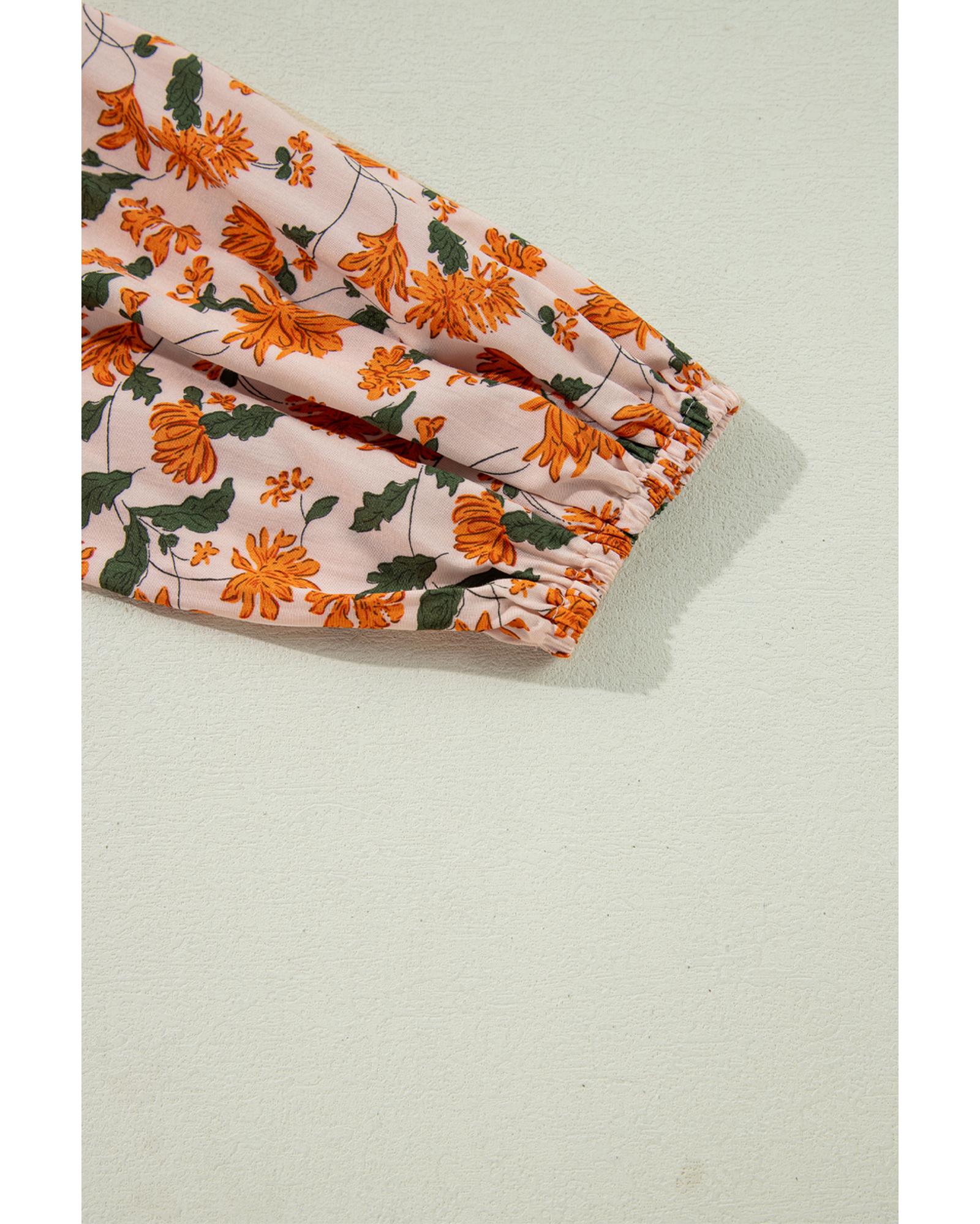 - Deep V neckline with a floral print