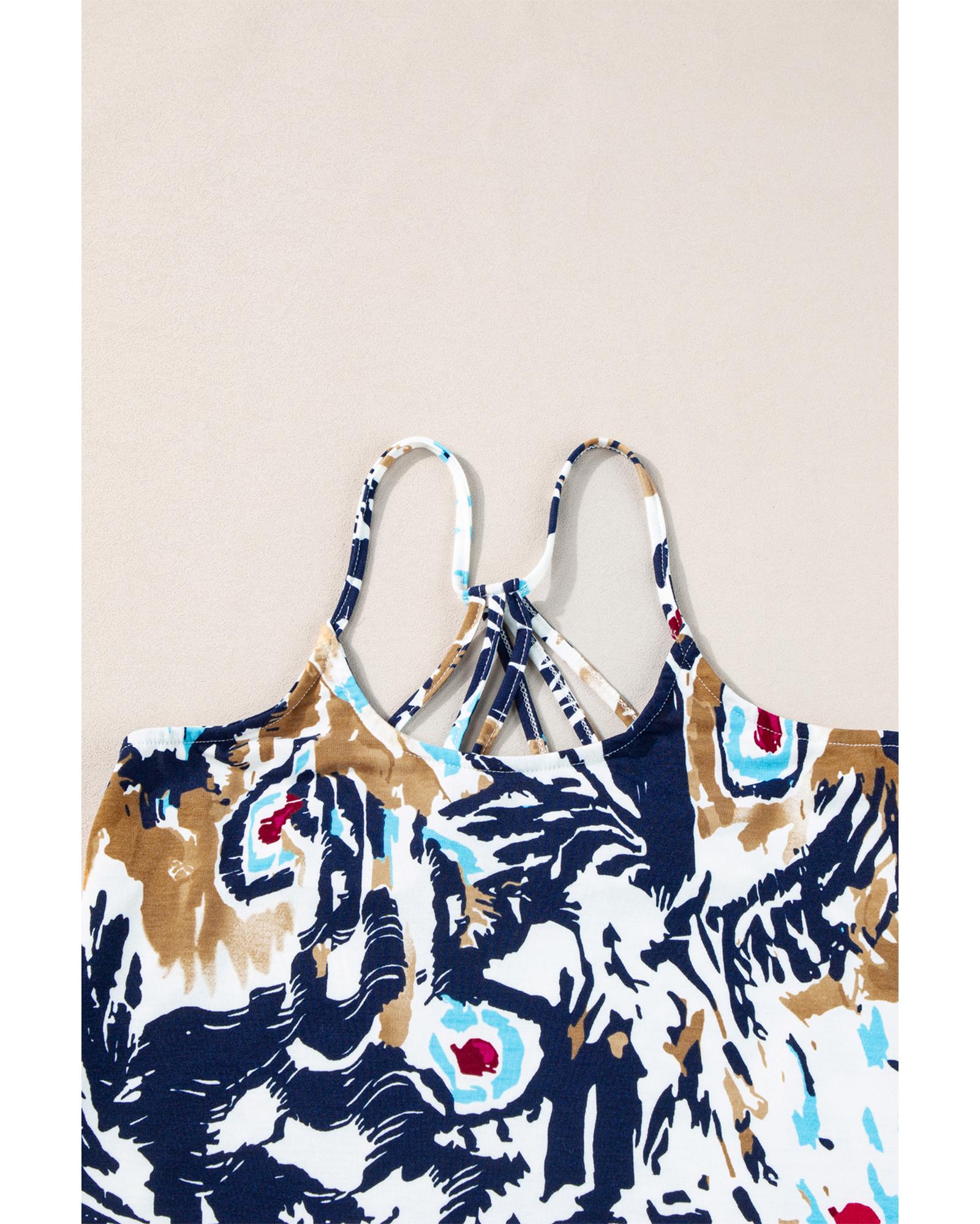 Beige Floral Spaghetti Straps Strappy Back Tank Top – S