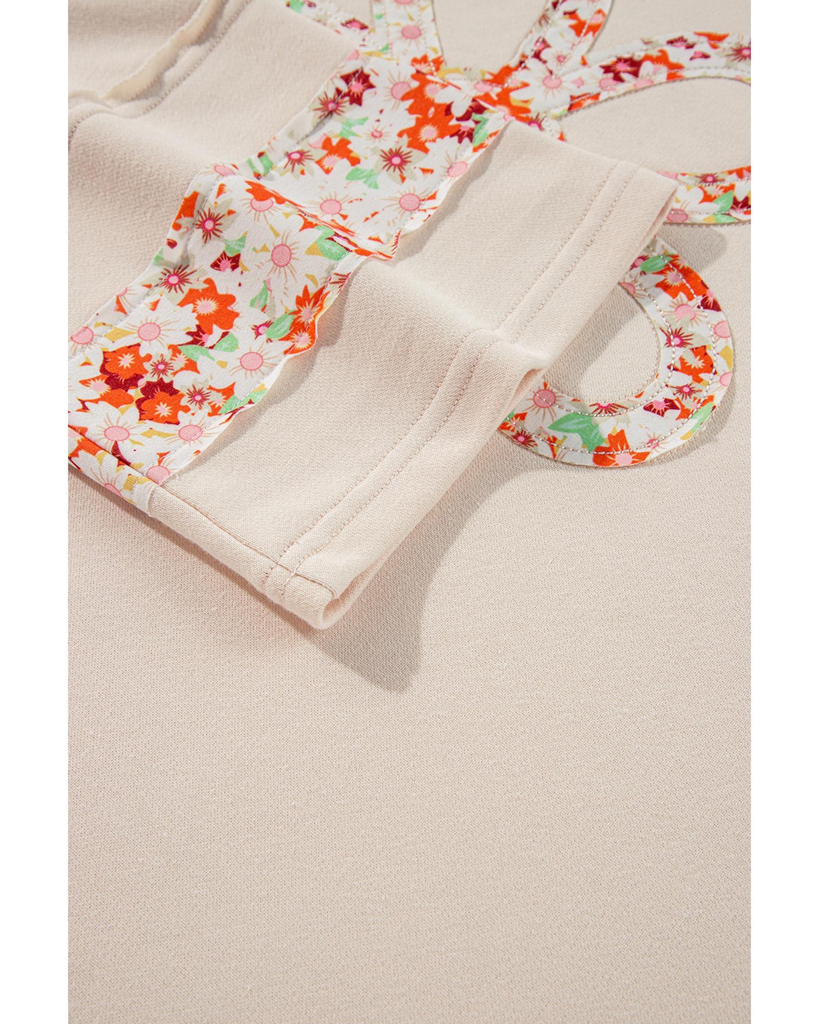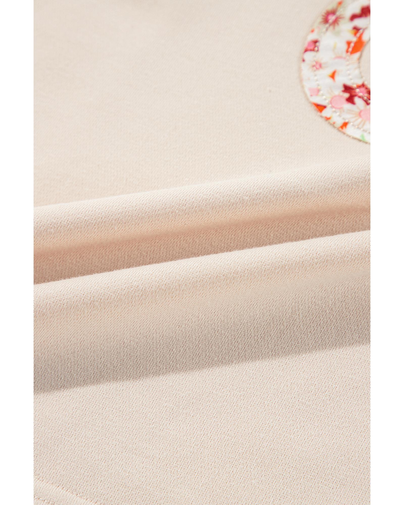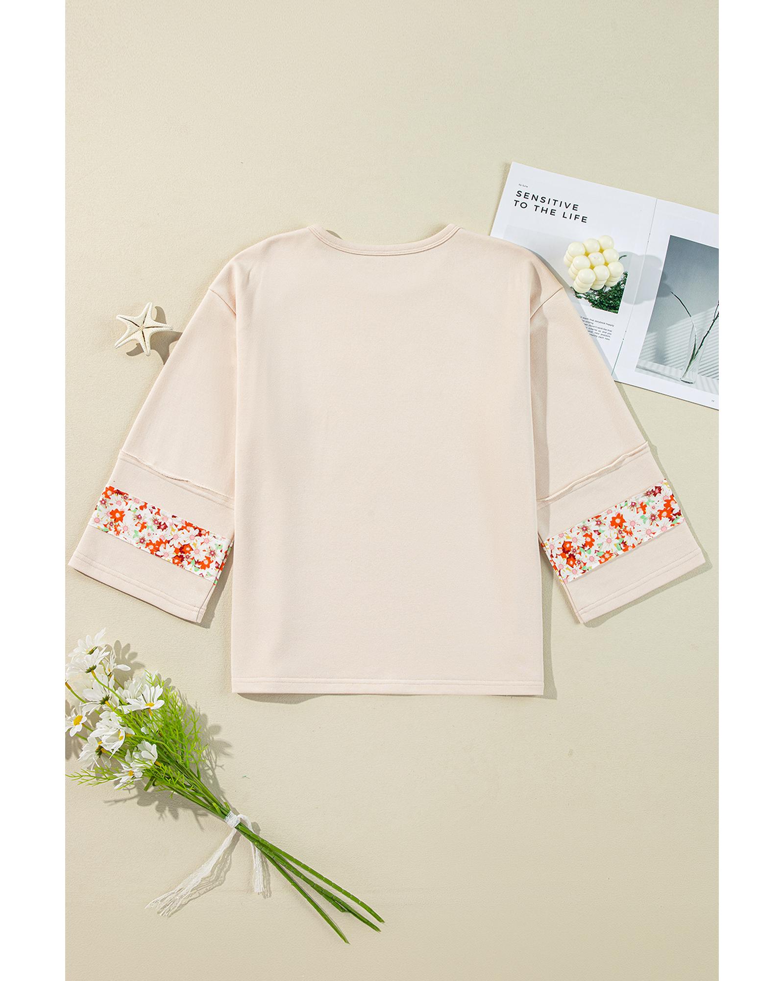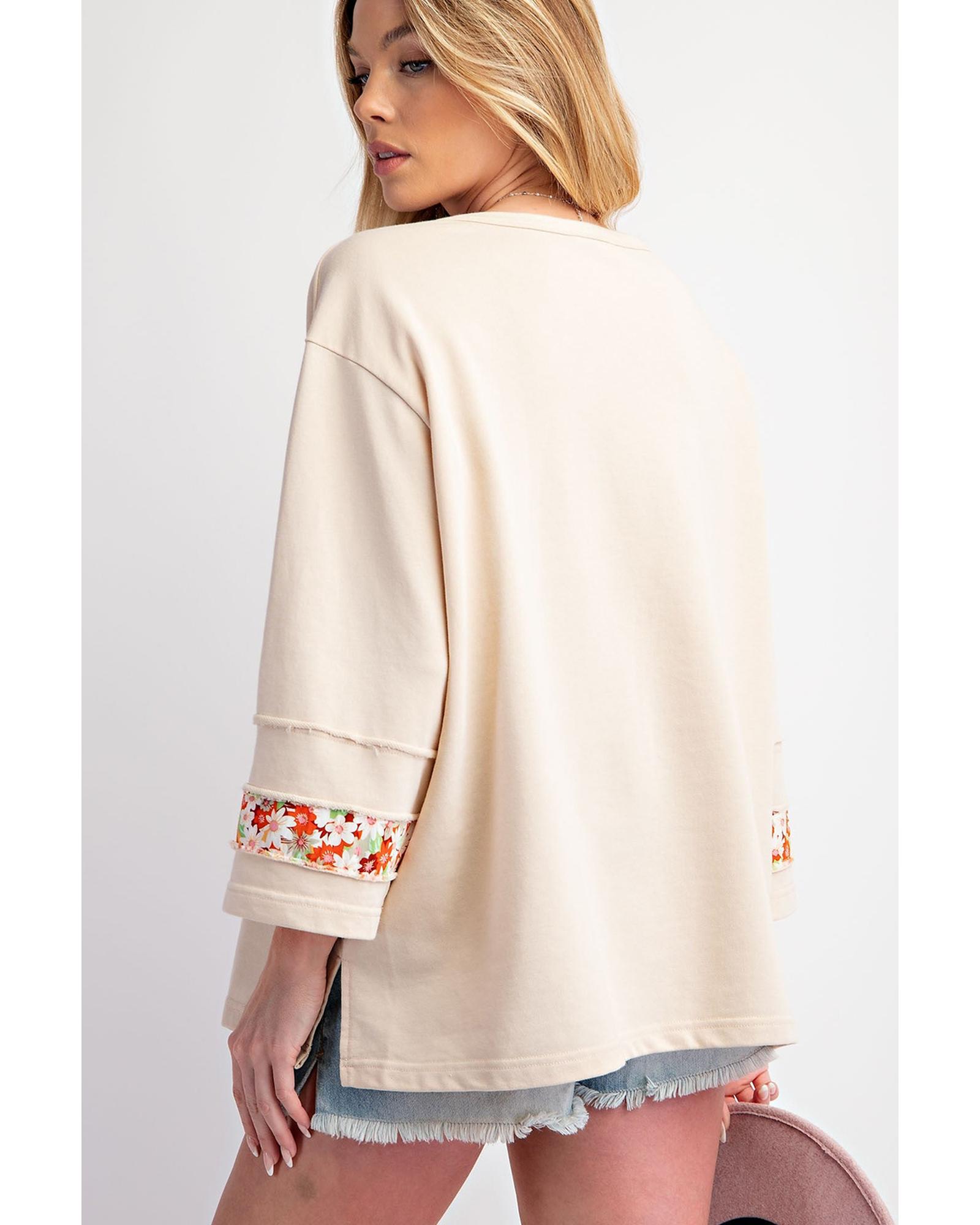 Beige Flower Patch Graphic Exposed Seam Wide Sleeve Top – L