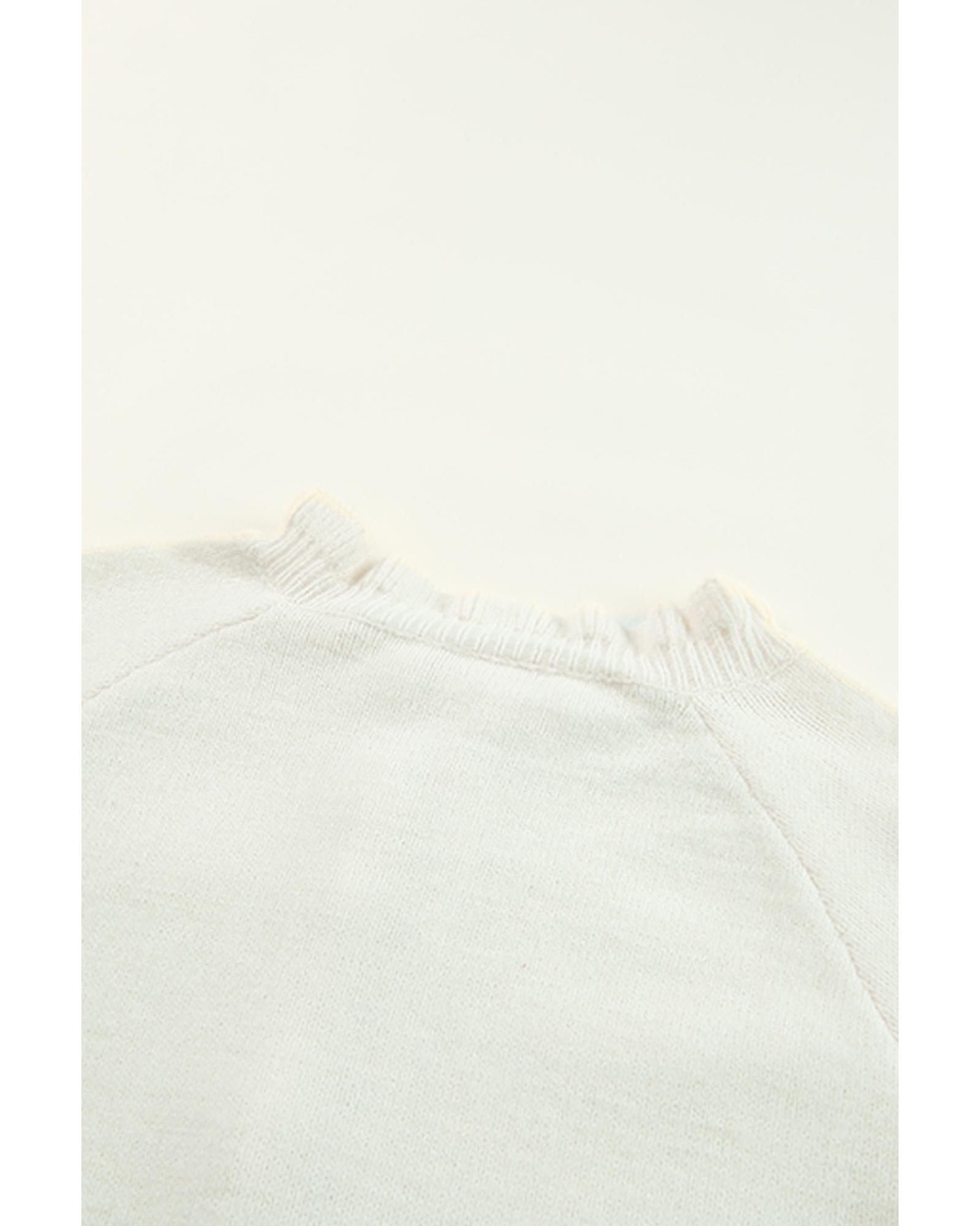This beige knit pullover sweater features a stylish frill trim and button details, offering a trendy and elegant look. Designed for comfort and warmth, it is suitable for daily winter wear and pairs well with jeans, skirts, and sneakers.