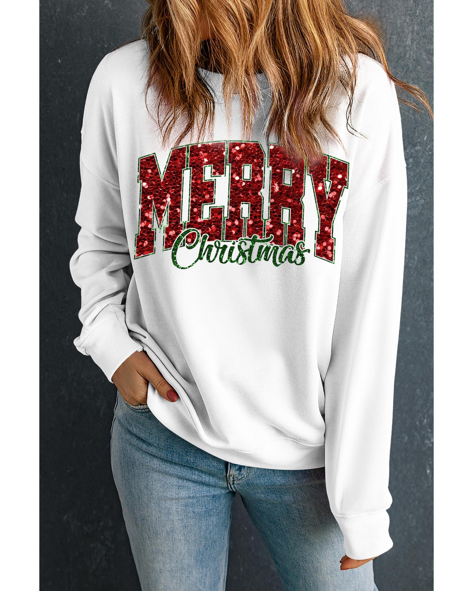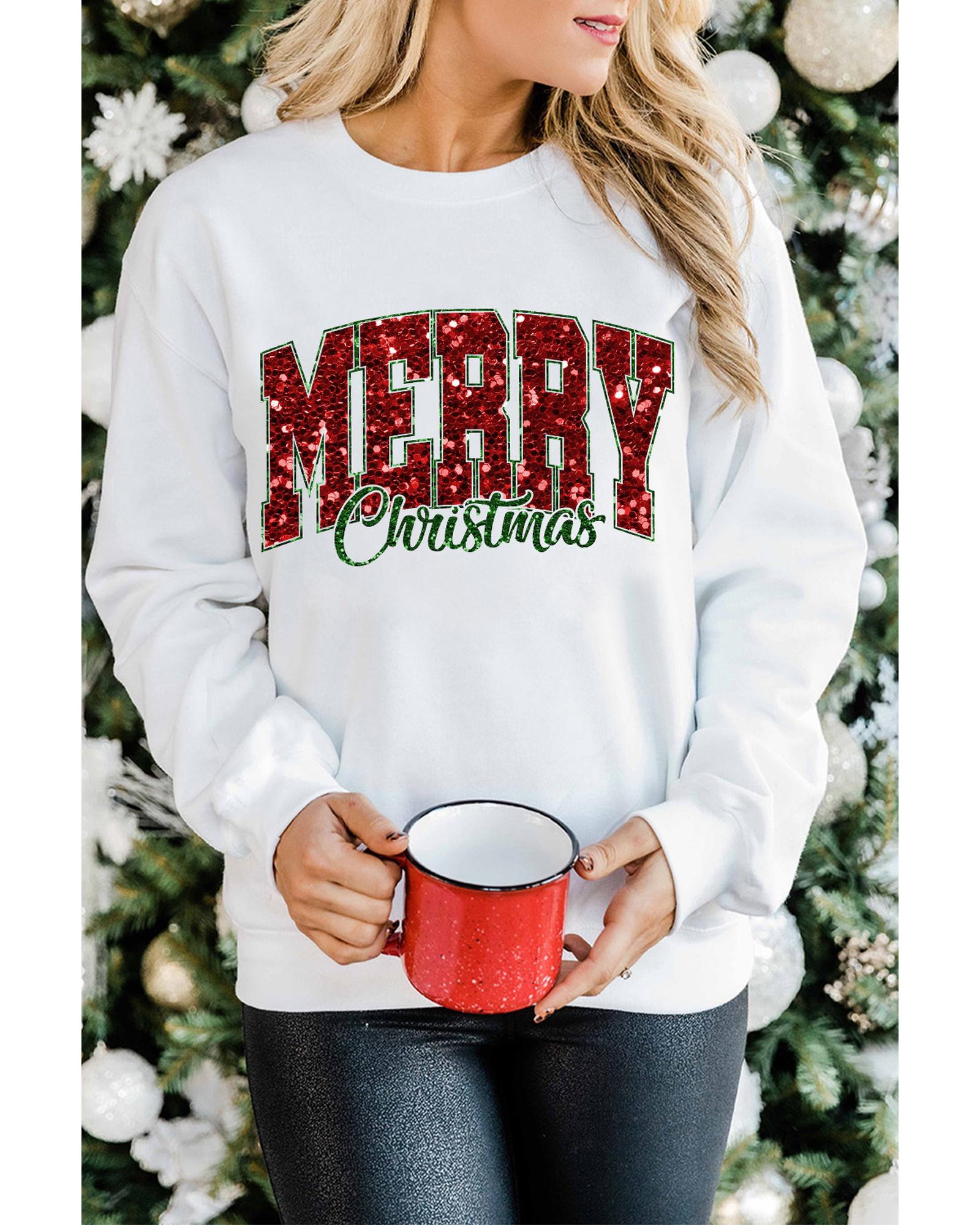 Beige MERRY Christmas Heat Transfer Printing Crewneck Pullover Sweatshirt – XL