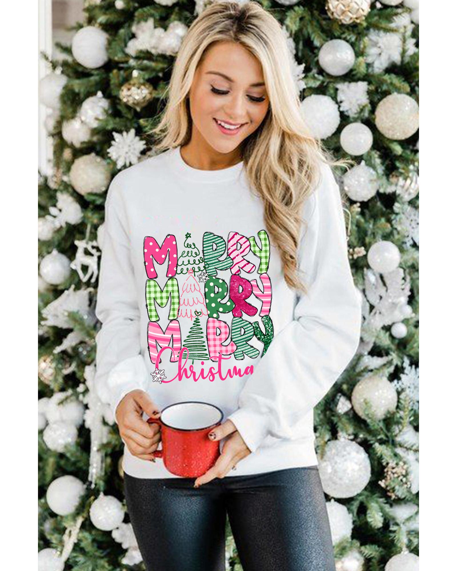 Beige MERRY Christmas Printed Drop Shoulder Pullover Sweatshirt – S