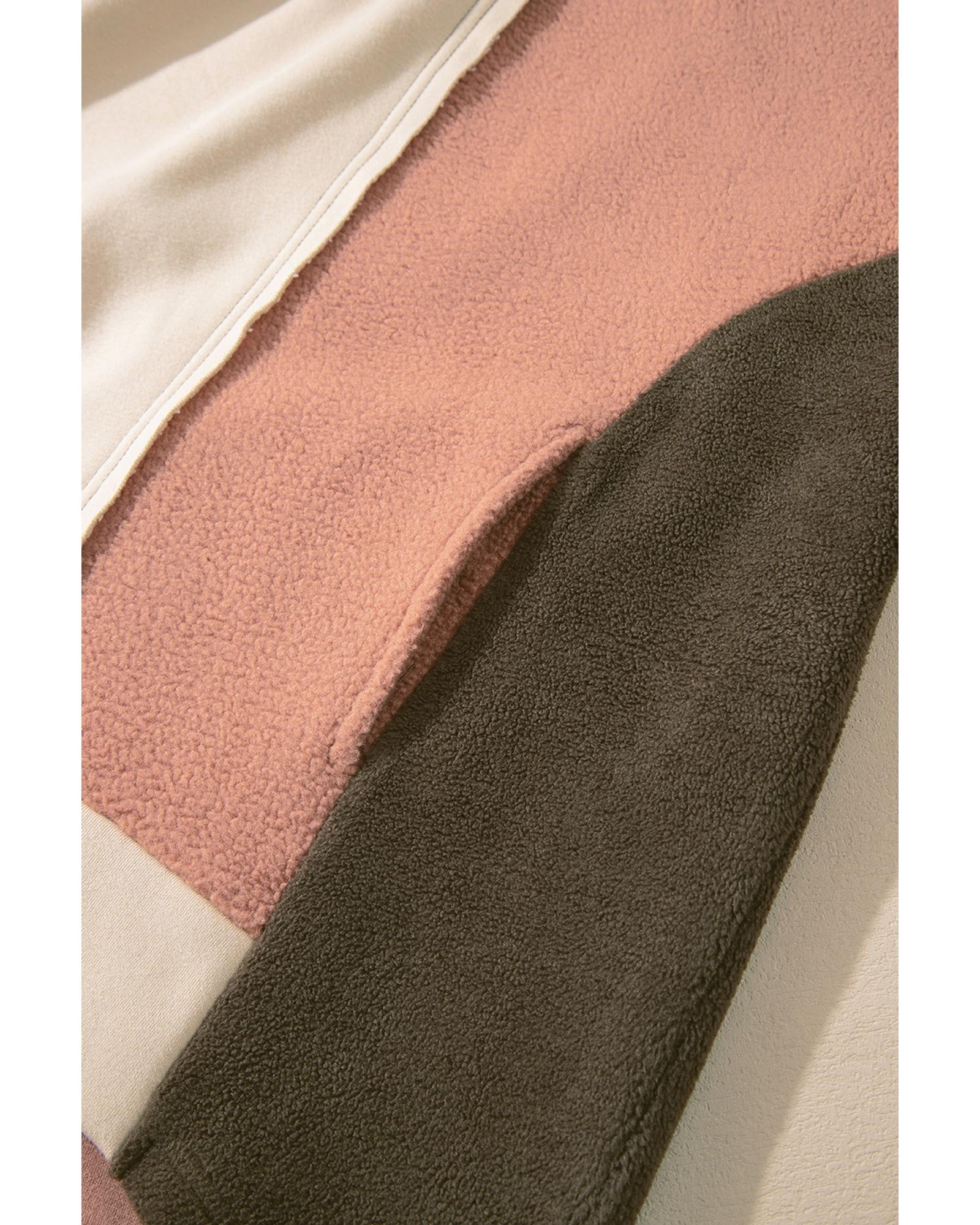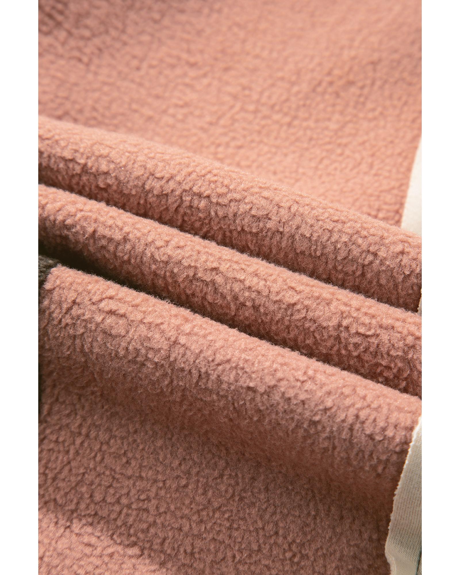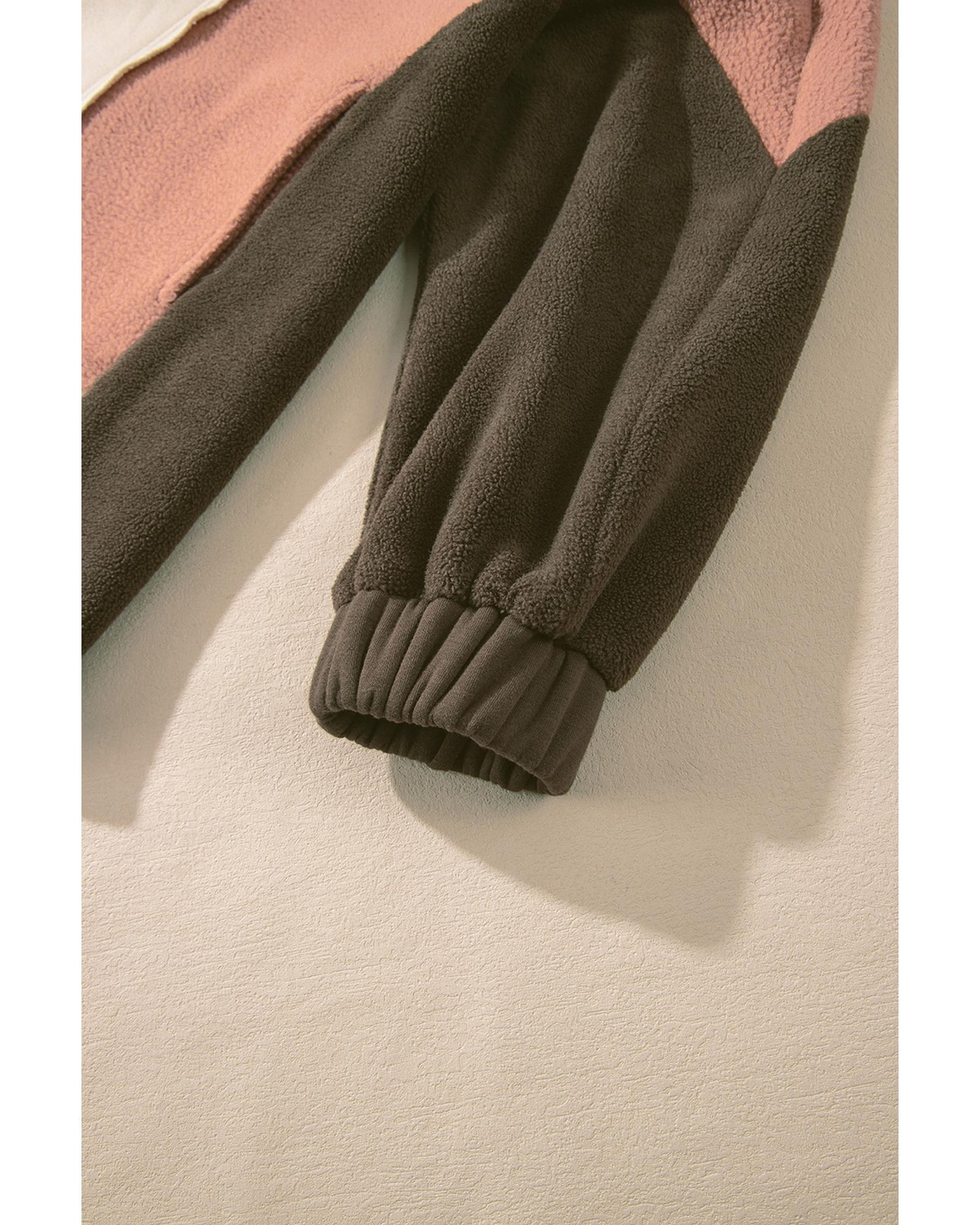Orange Colorblock Half Zipper Stand Neck Sherpa Sweatshirt - S