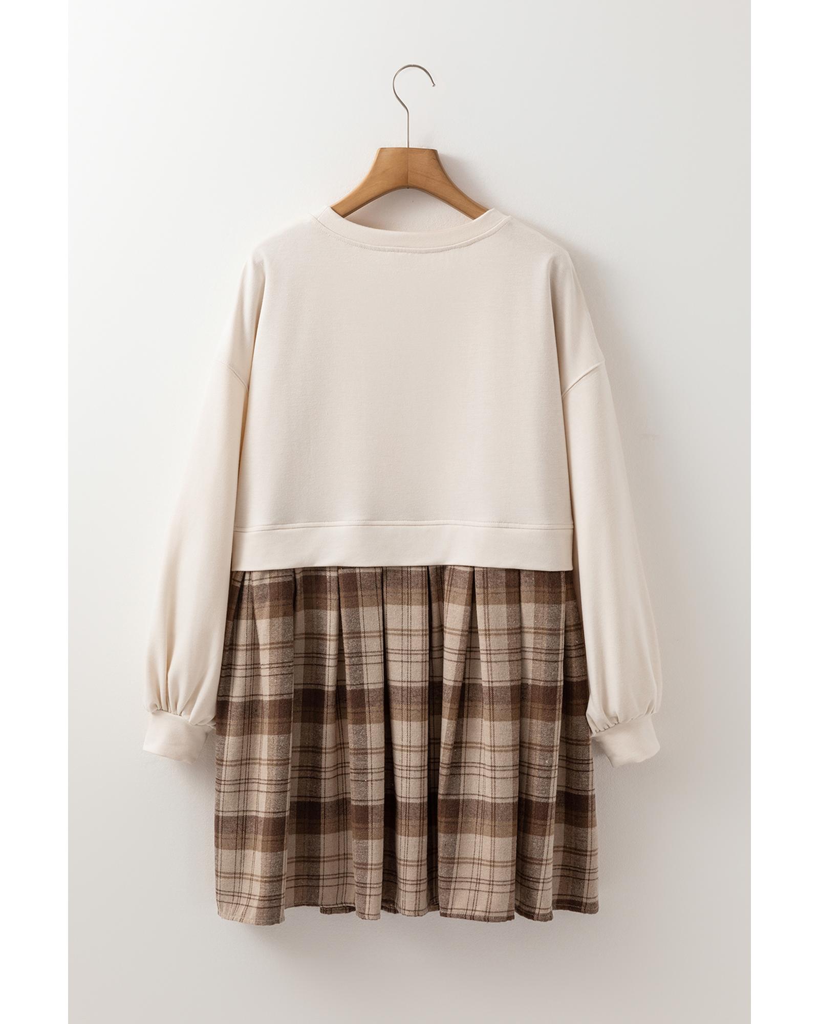 Beige Plaid Patchwork High Waist Sweatshirt Mini Dress - S Original price was: $64.99.Current price is: $34.99.