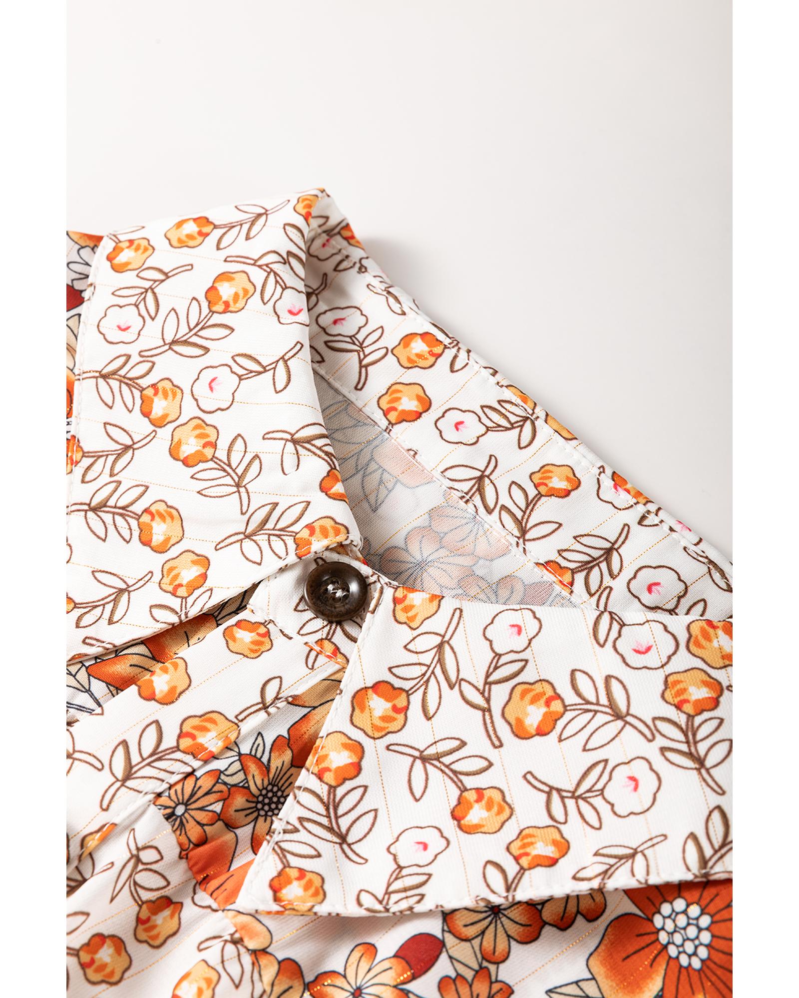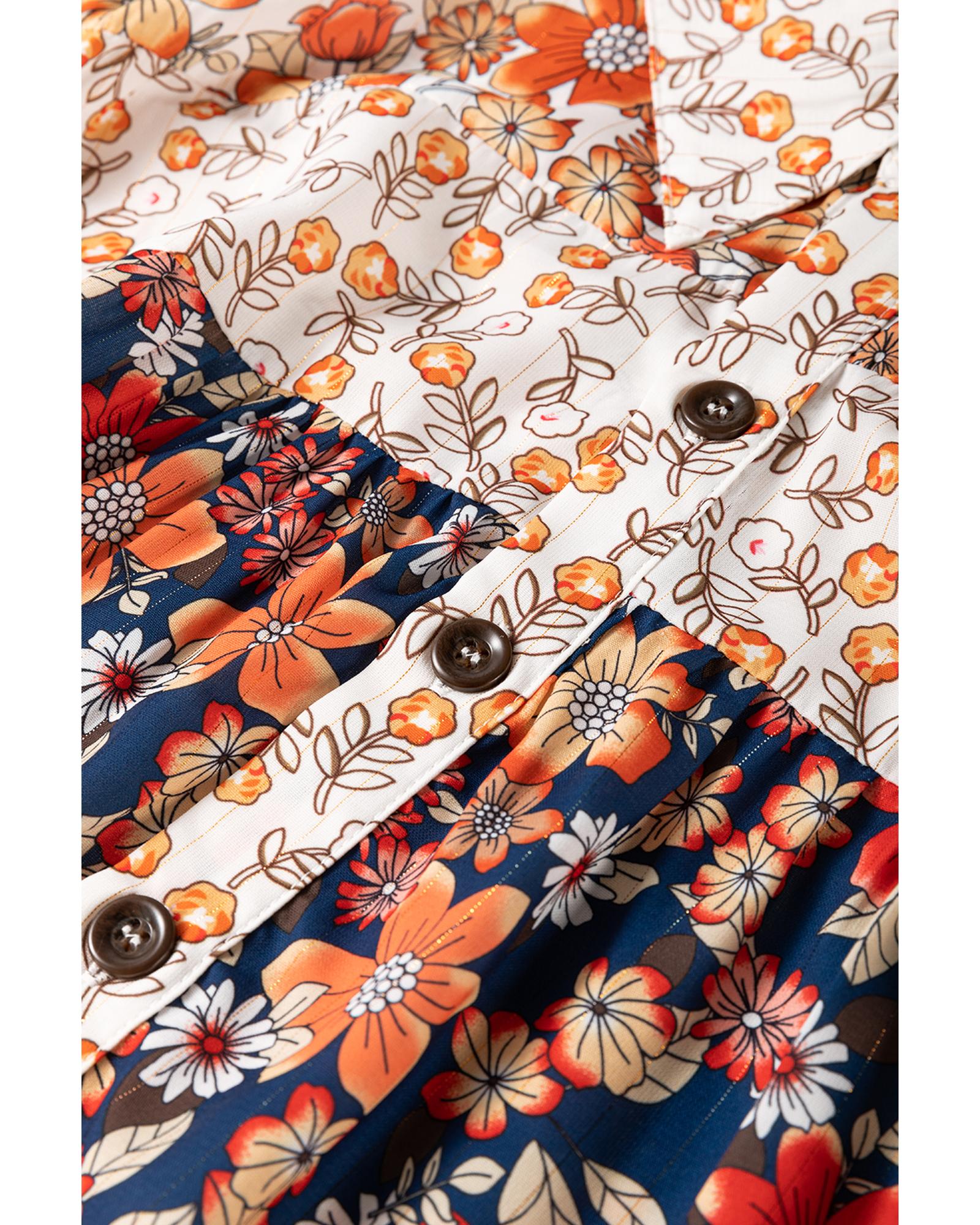 Beige Plus Size Floral Patchwork Button Front Collared Mini Dress – 2X