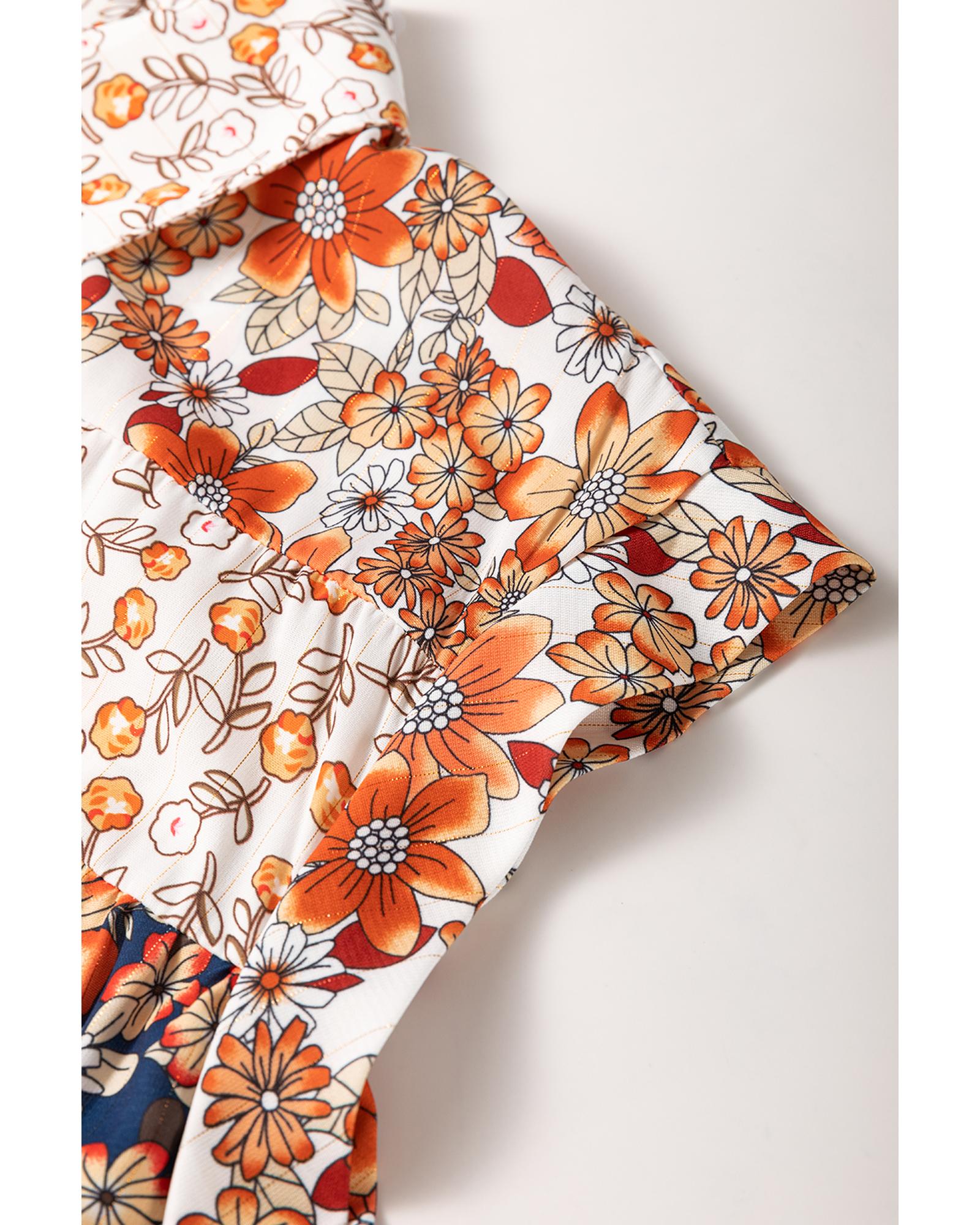 Beige Plus Size Floral Patchwork Button Front Collared Mini Dress - 2X