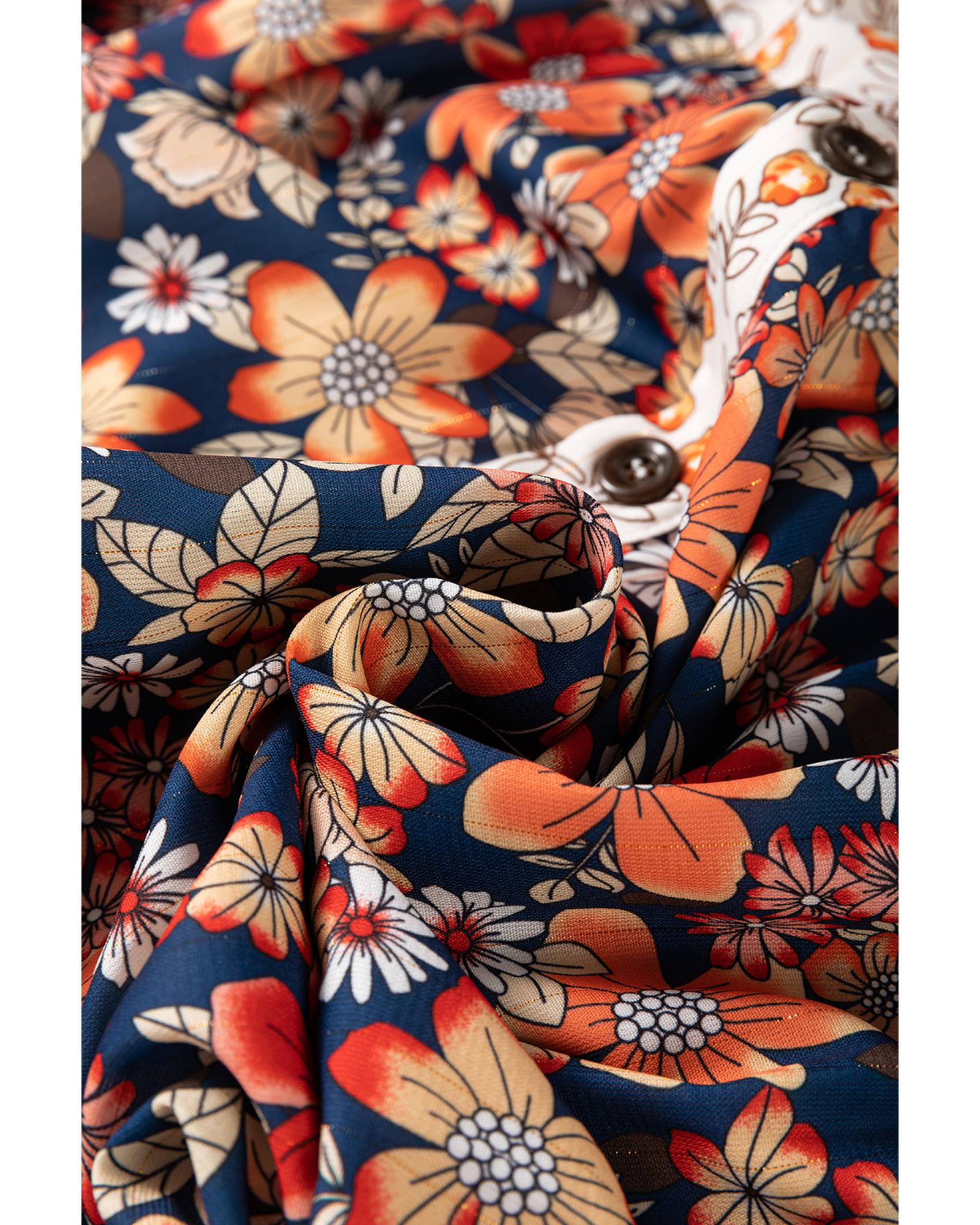 Beige Plus Size Floral Patchwork Button Front Collared Mini Dress – 4X