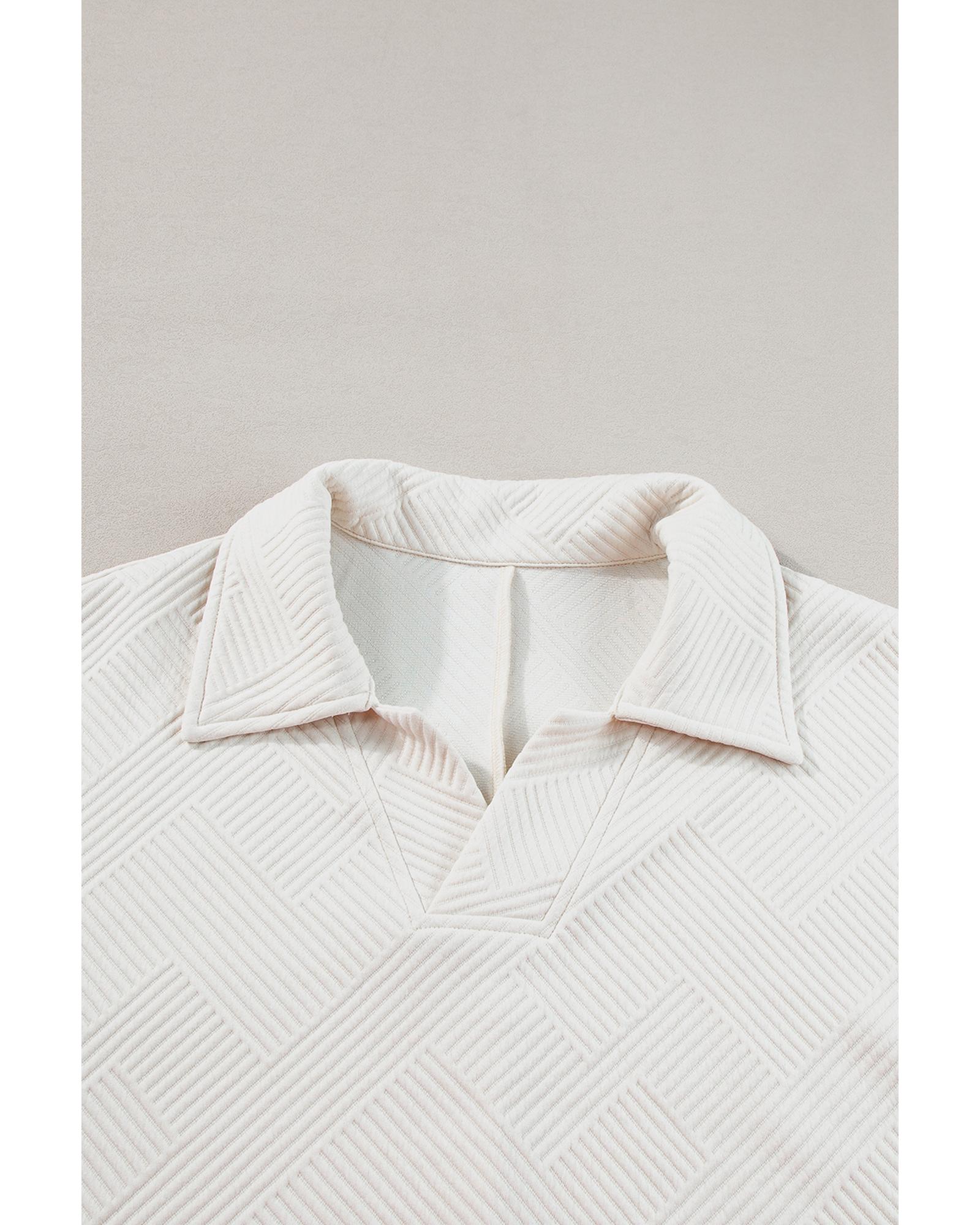 Beige Plus Size Textured Collared Top and Pants Set – 1X