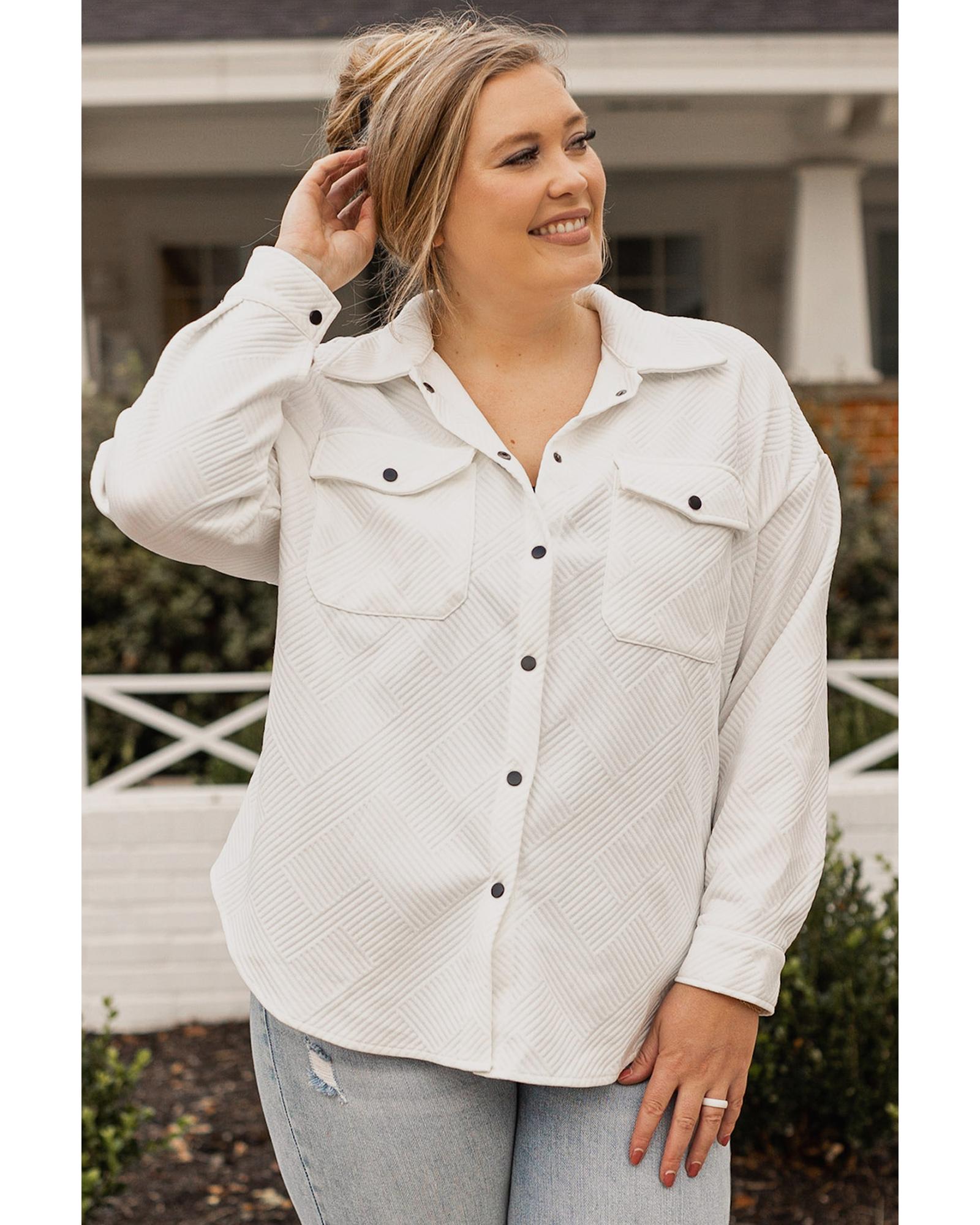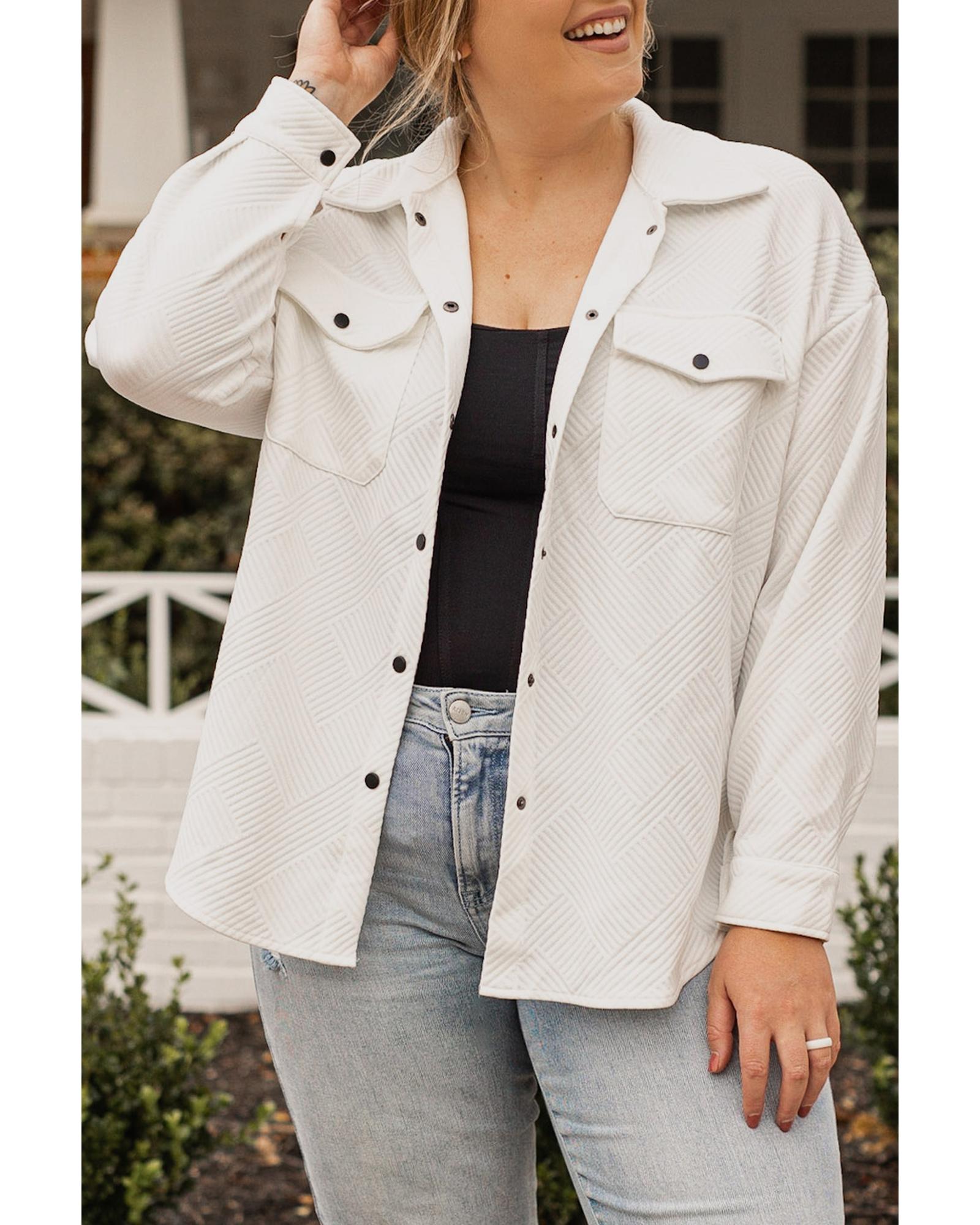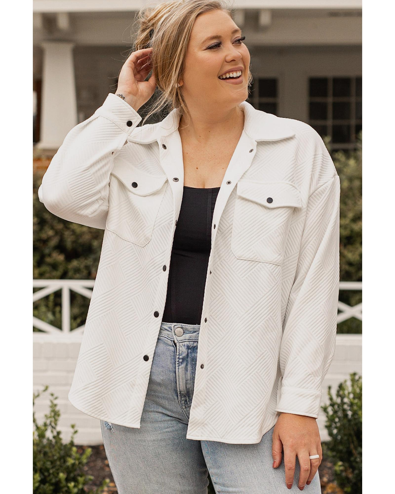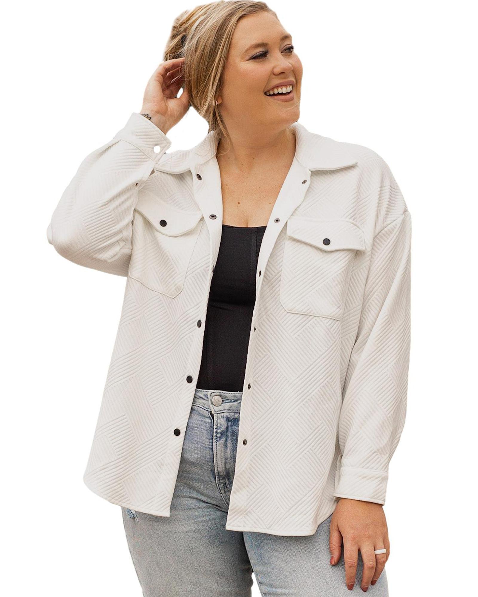 Beige Plus Size Textured Flap Pockets Jacket – 3X
