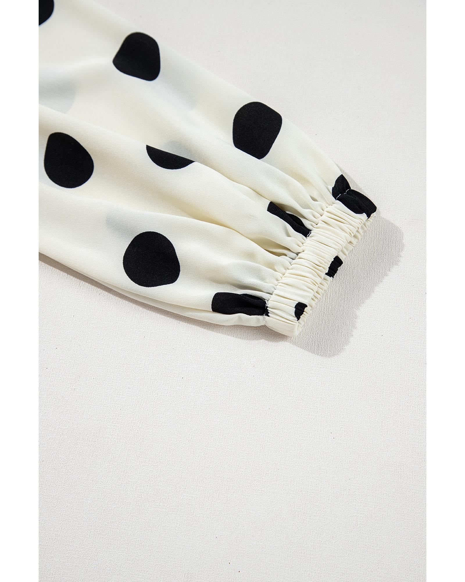 Beige Polka Dot Printed Surplice V Neck Puff Sleeve Mini Dress - S Original price was: $70.99.Current price is: $37.99.