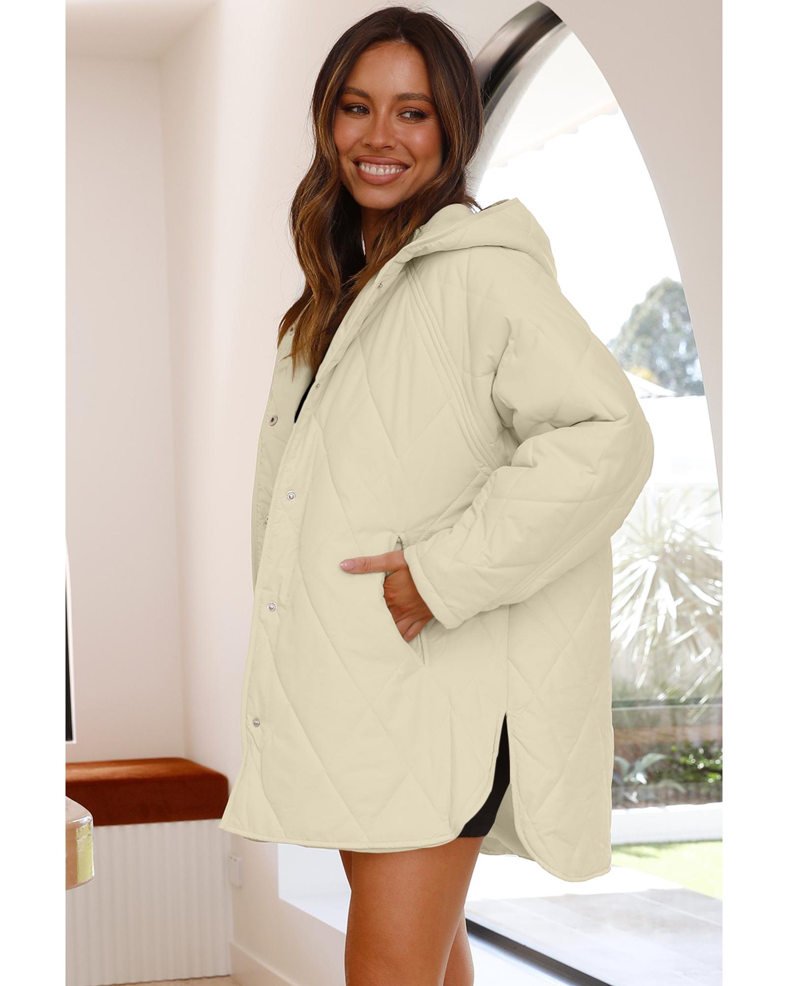 Beige Quilted Snap Button Hooded Coat – L