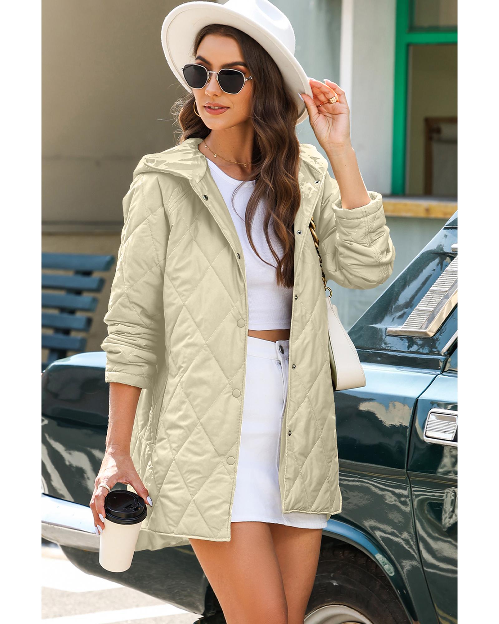 - Package includes: 1 beige quilted hooded coat