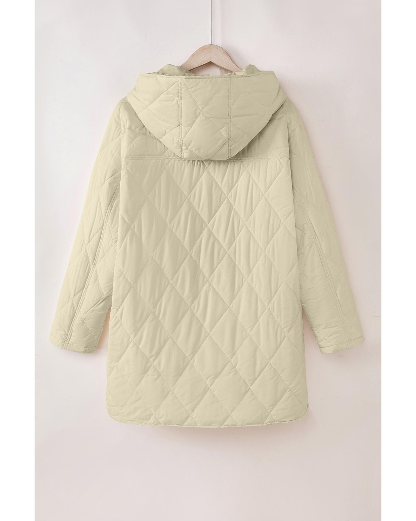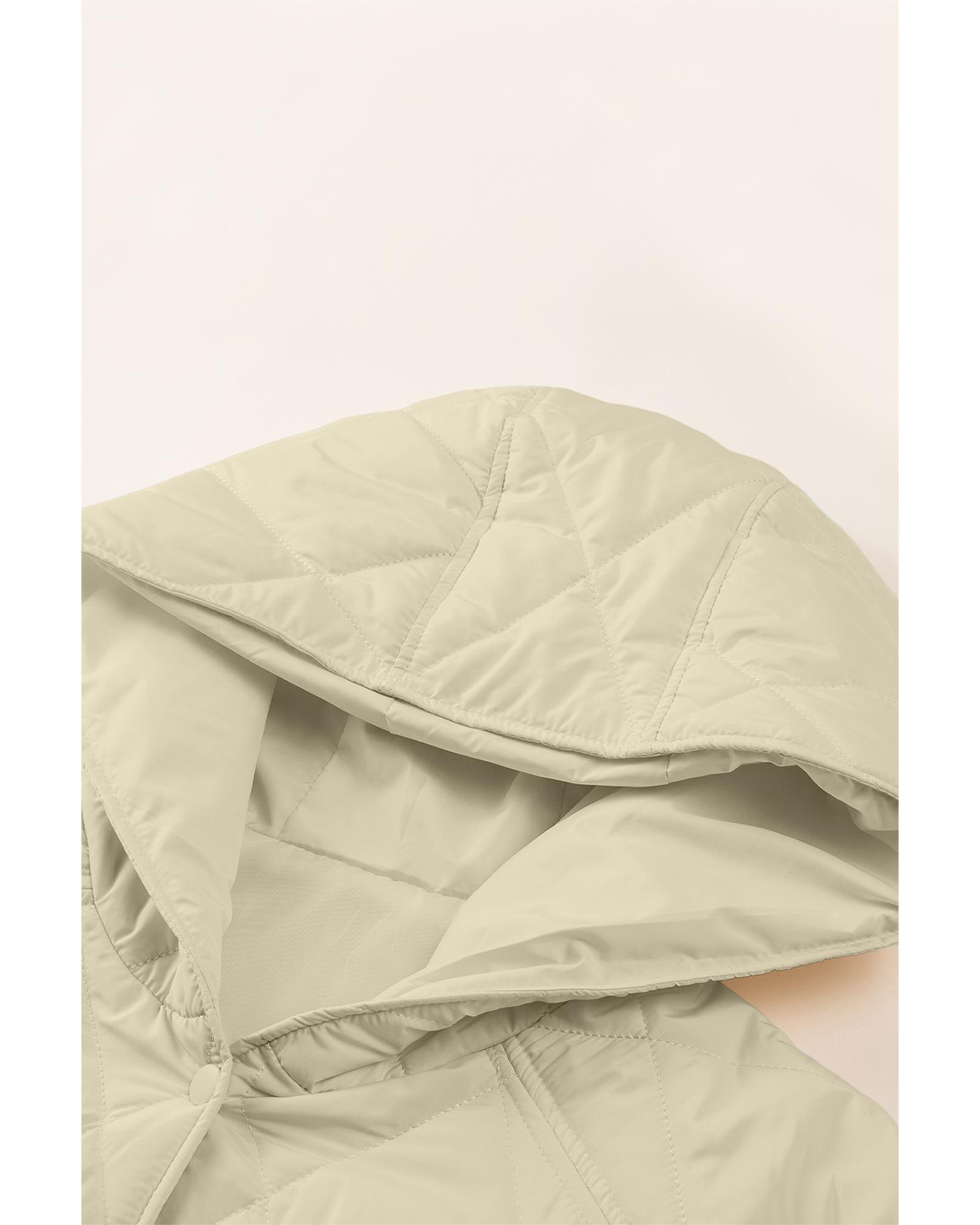 Beige Quilted Snap Button Hooded Coat – S