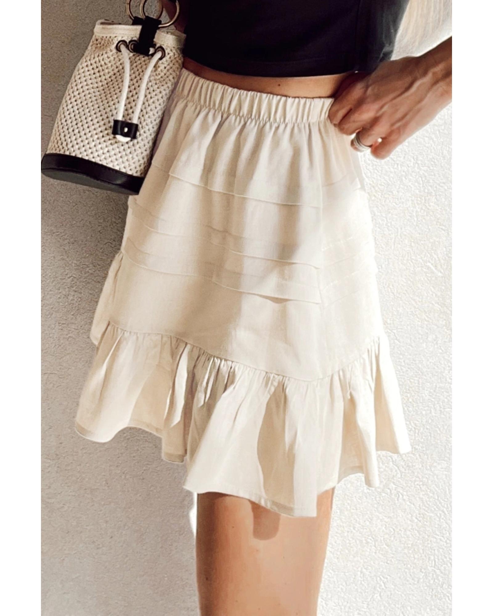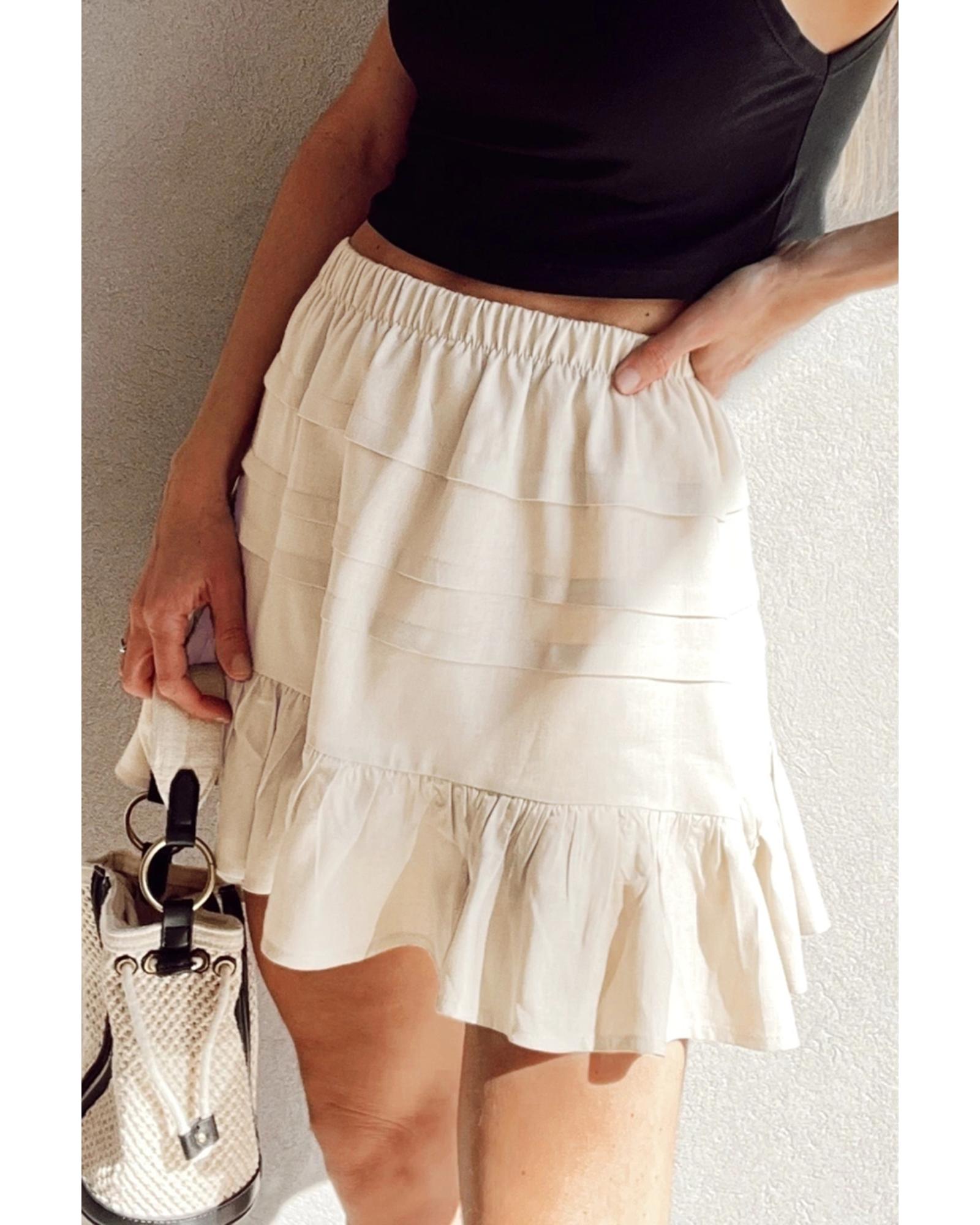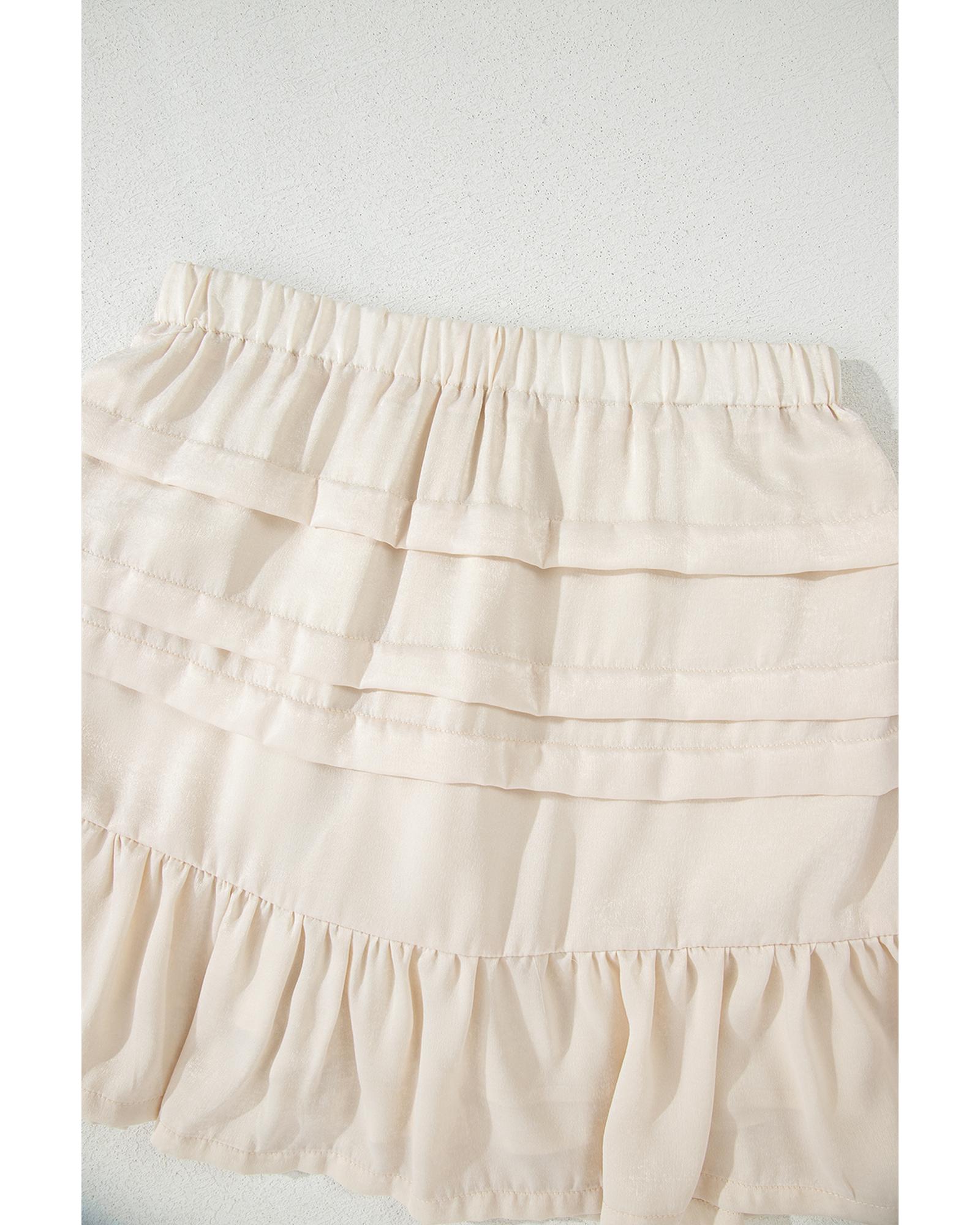 Beige Tiered Ruffled Hemline Elastic Waist Mini Skirt – L