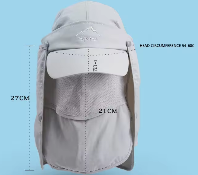 - 4-in-1 design with wide brim, removable face flap, neck cover, and breathable mesh