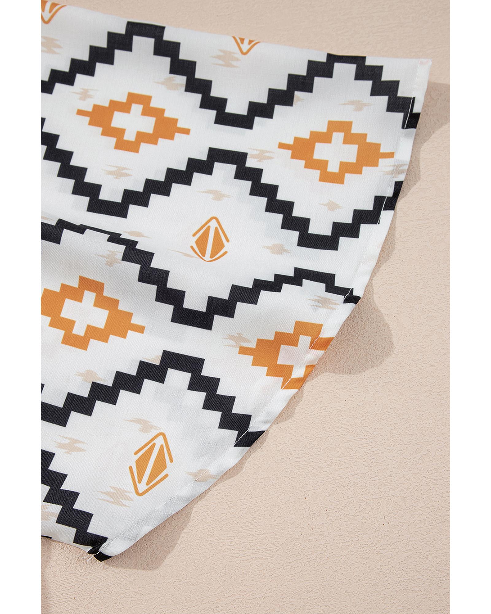 This beige mini dress features a Western Aztec print with a pleated design and a square neckline. It offers a loose fit with flutter sleeves, making it a stylish and comfortable choice for casual occasions. The lightweight fabric ensures ease of wear and movement, while the trendy Western patterns add a fashionable touch.